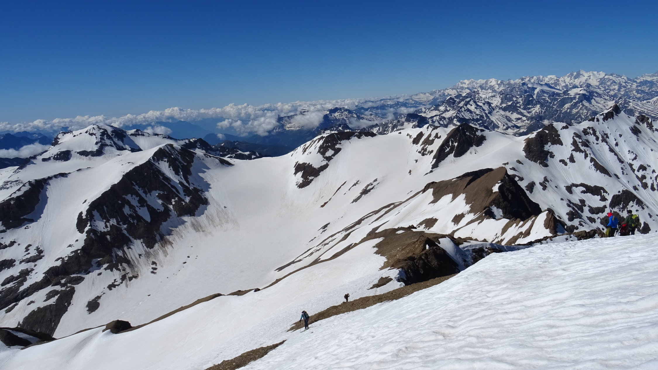 Danach querten wir zum Griesgletscherpass hinüber wo ich allein noch zu Fuss auf den Merezebachschije 3182m ging