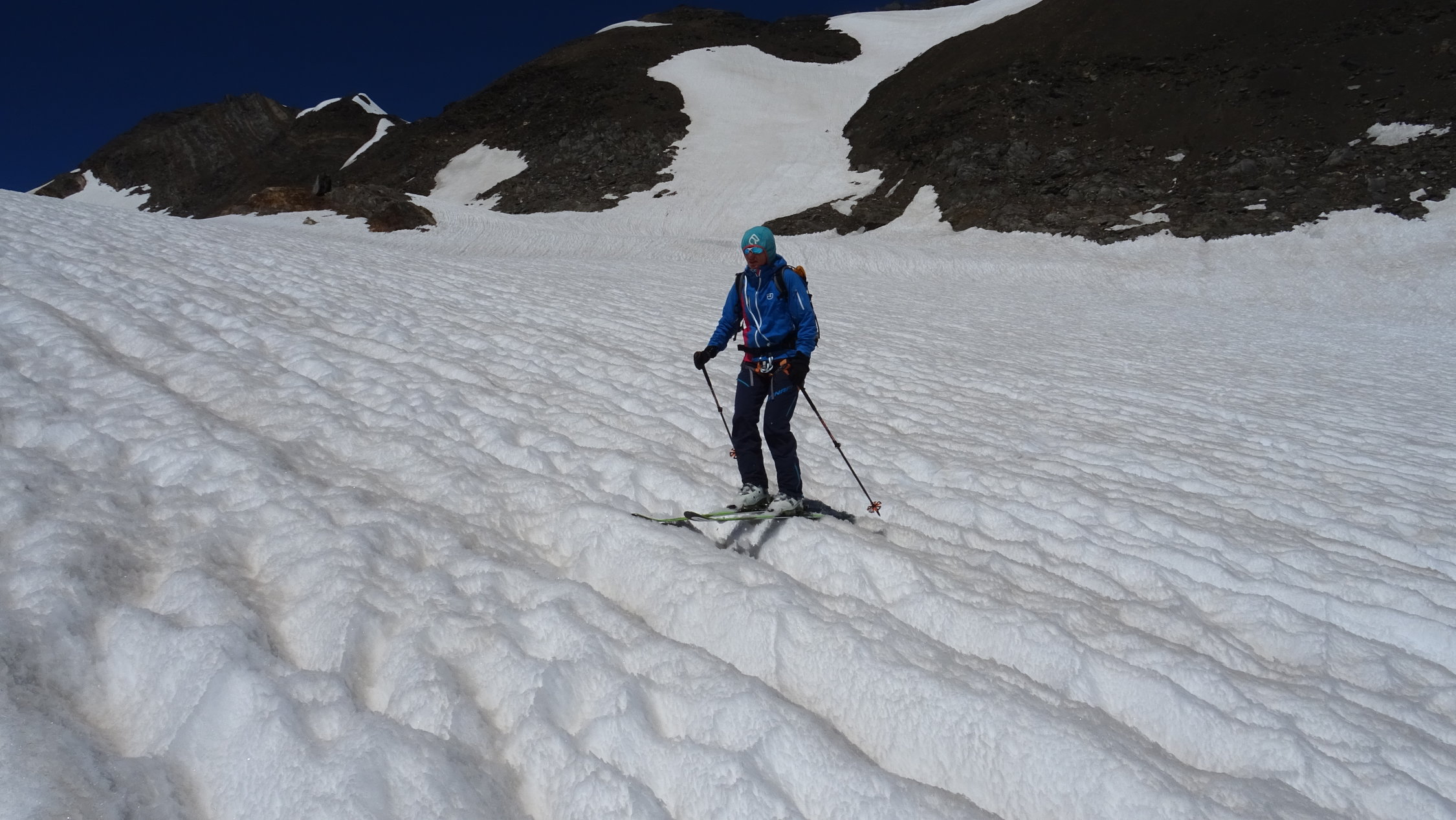 Von der Kurve 2303m bin ich danach noch 150Hm hochgestiegen Richtung Nufenenpass und dieser Hang war der schönste des heutigen Tages mit schönstem Sommersulz