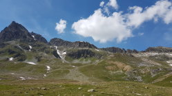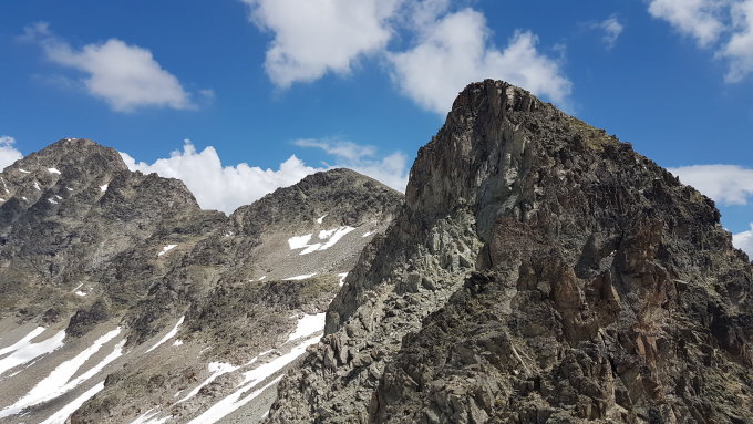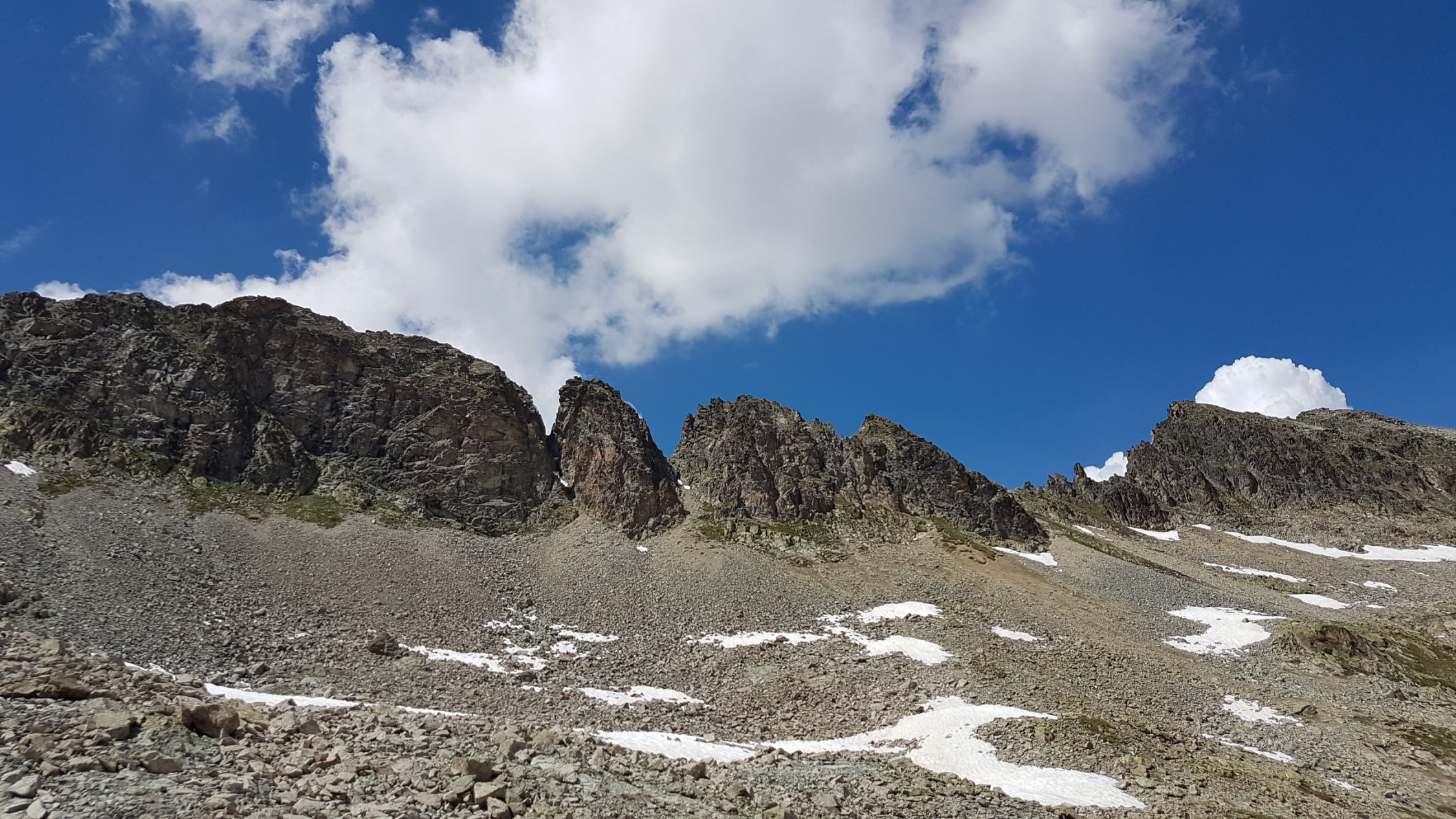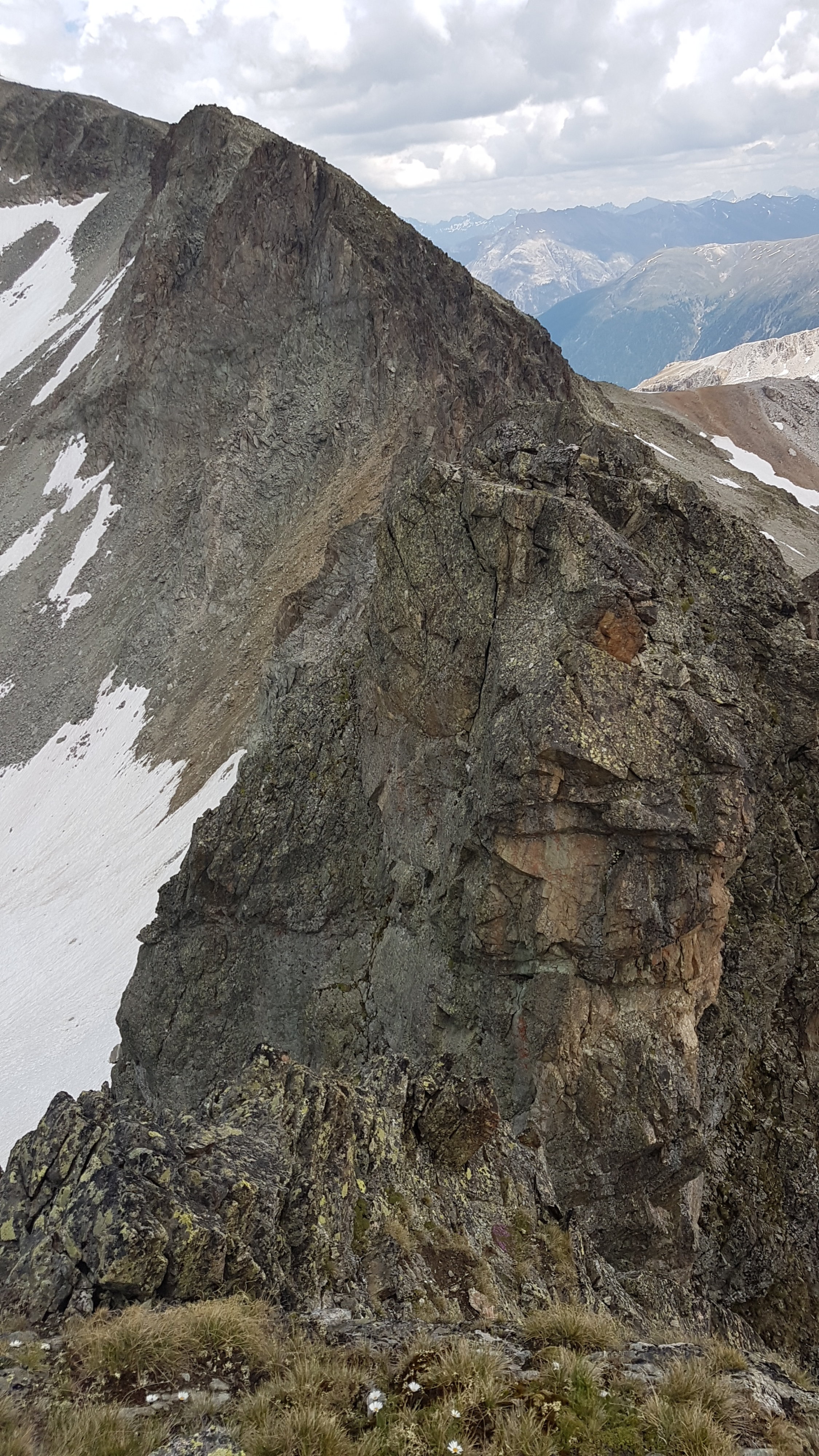 Wie im Routenbeschrieb erwähnt, hat es ein paar Steile Flanken, welche nicht so einfach runter zu klettern sind. Zudem lässt die Felsqualität zu wünschen übrig. Wenn man über den Ostgrat den Piz Saluver hoch gehen möchte, dann direkt in die Scharte westlich von P3036 und von dort hoch auf den Gipfel