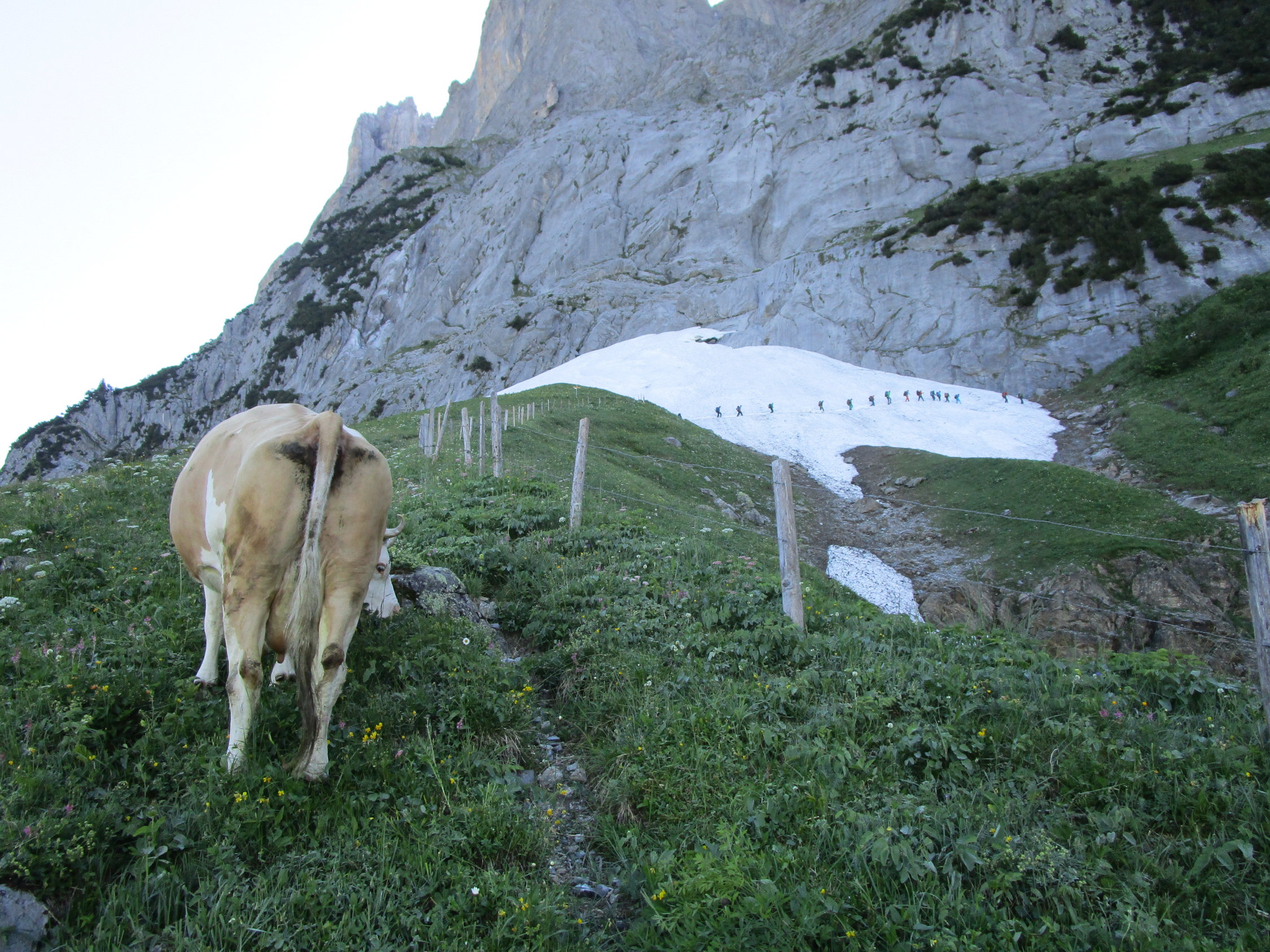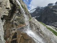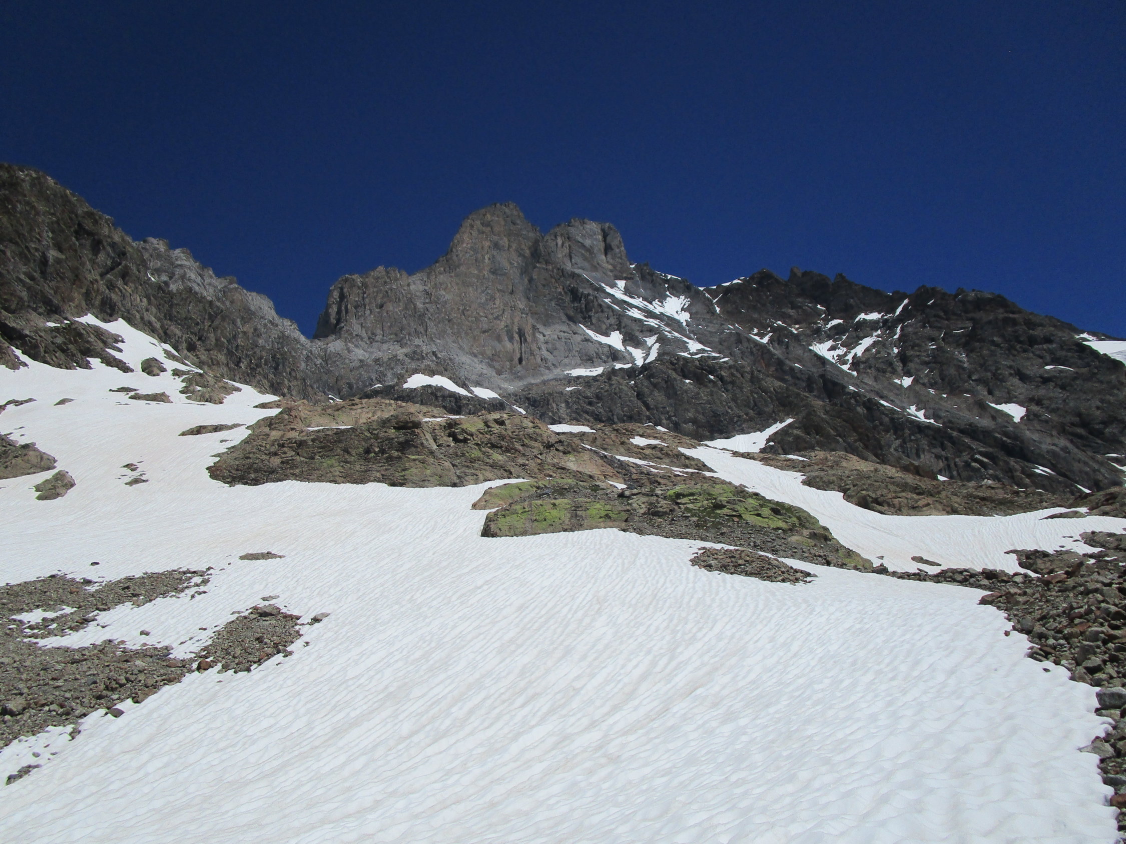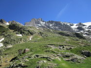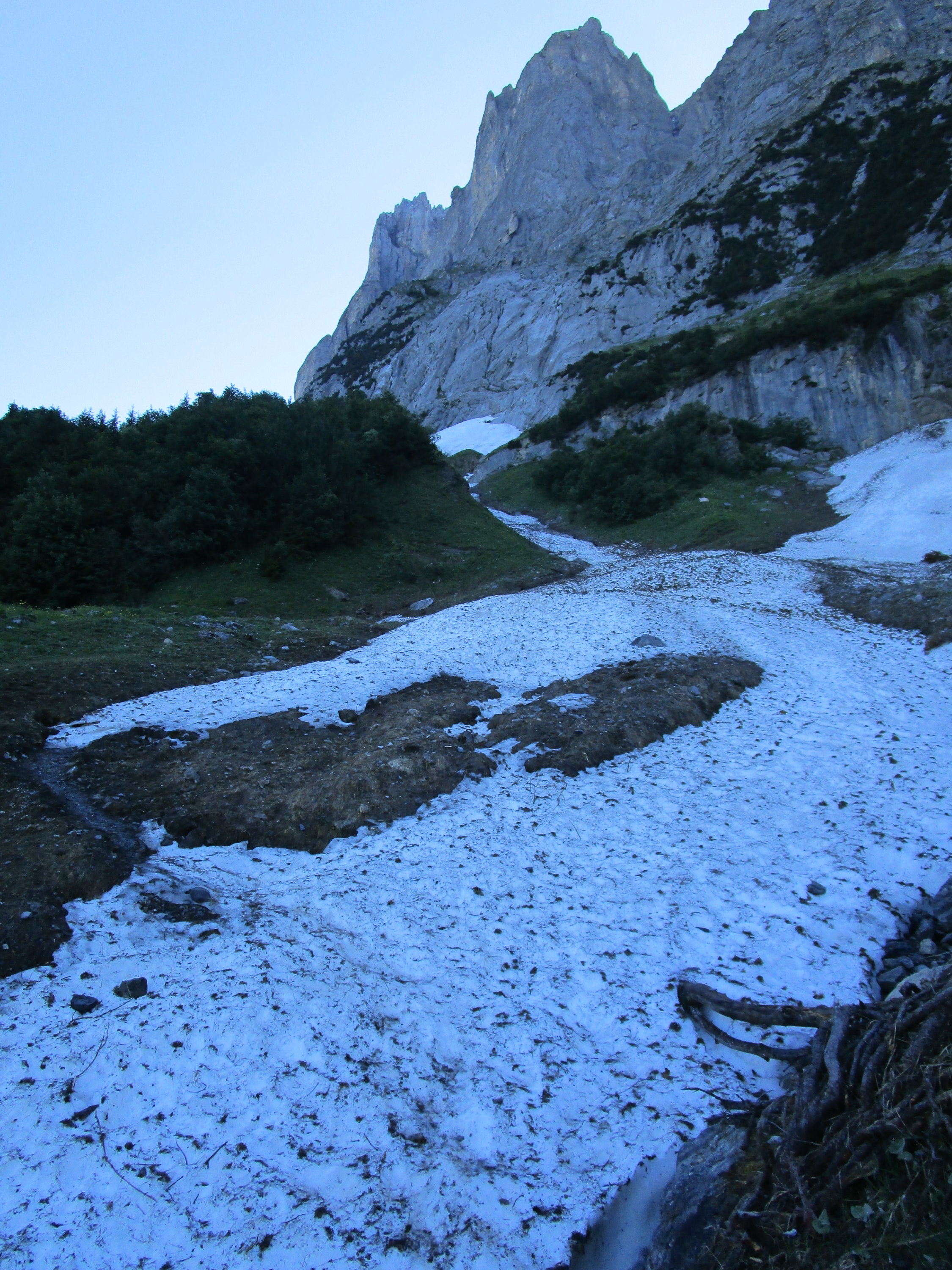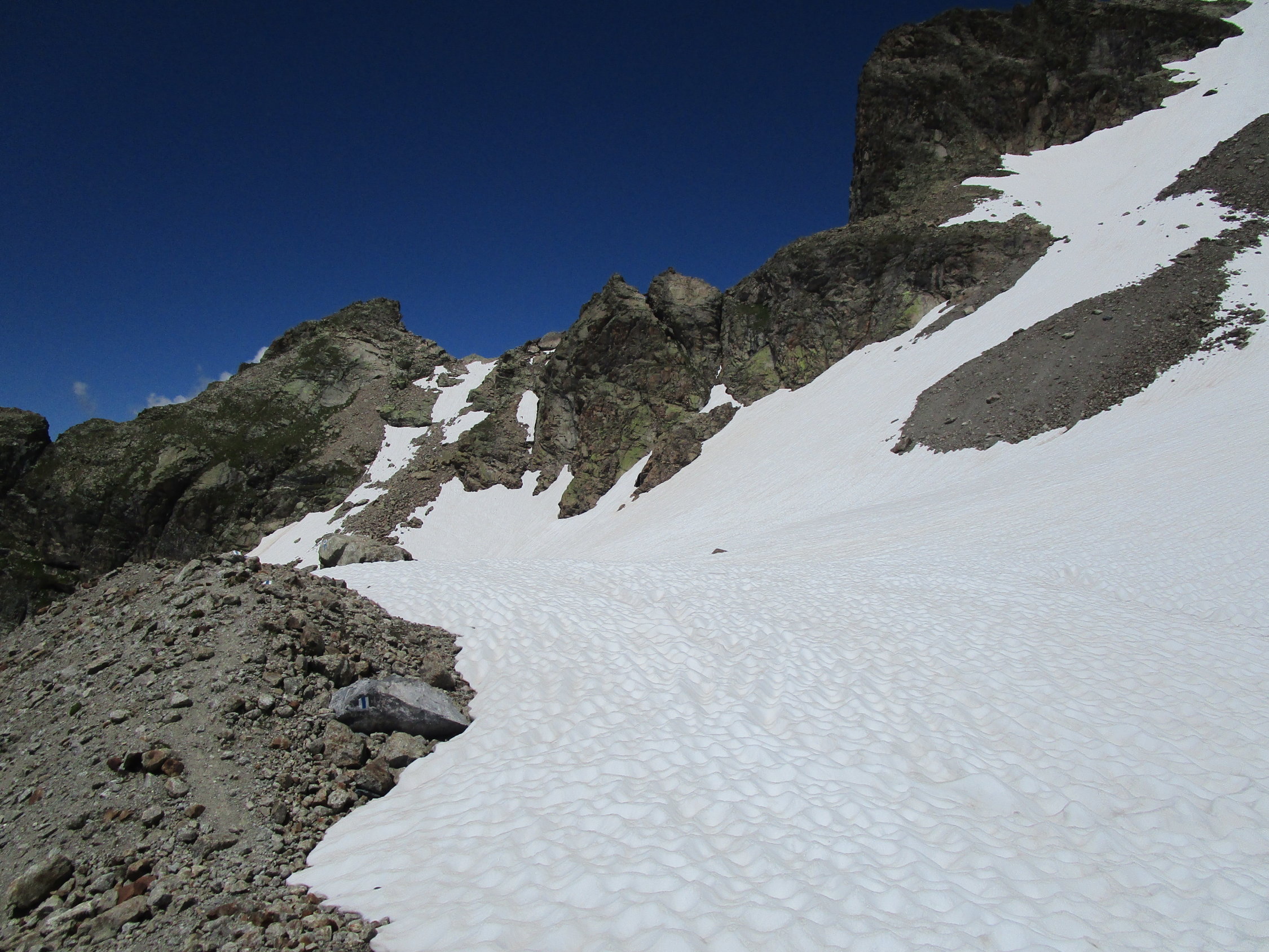 Wege und Pfade sind bis ca 2500m trocken und schneefrei, vorhandene Schneefelder können umgangen werden. Ab Moräne ca 2620m hat es noch durchwegs bis zum blauen Punkt Schnee...da ich keine Lust auf nasse Füsse... wegen des am Nachmittag vorhandenen Nassschnees hatte, beschloss ich mein Ziel diesmal auf die Moräne bei P 2670m zu beschränken. War auch wunderschön.