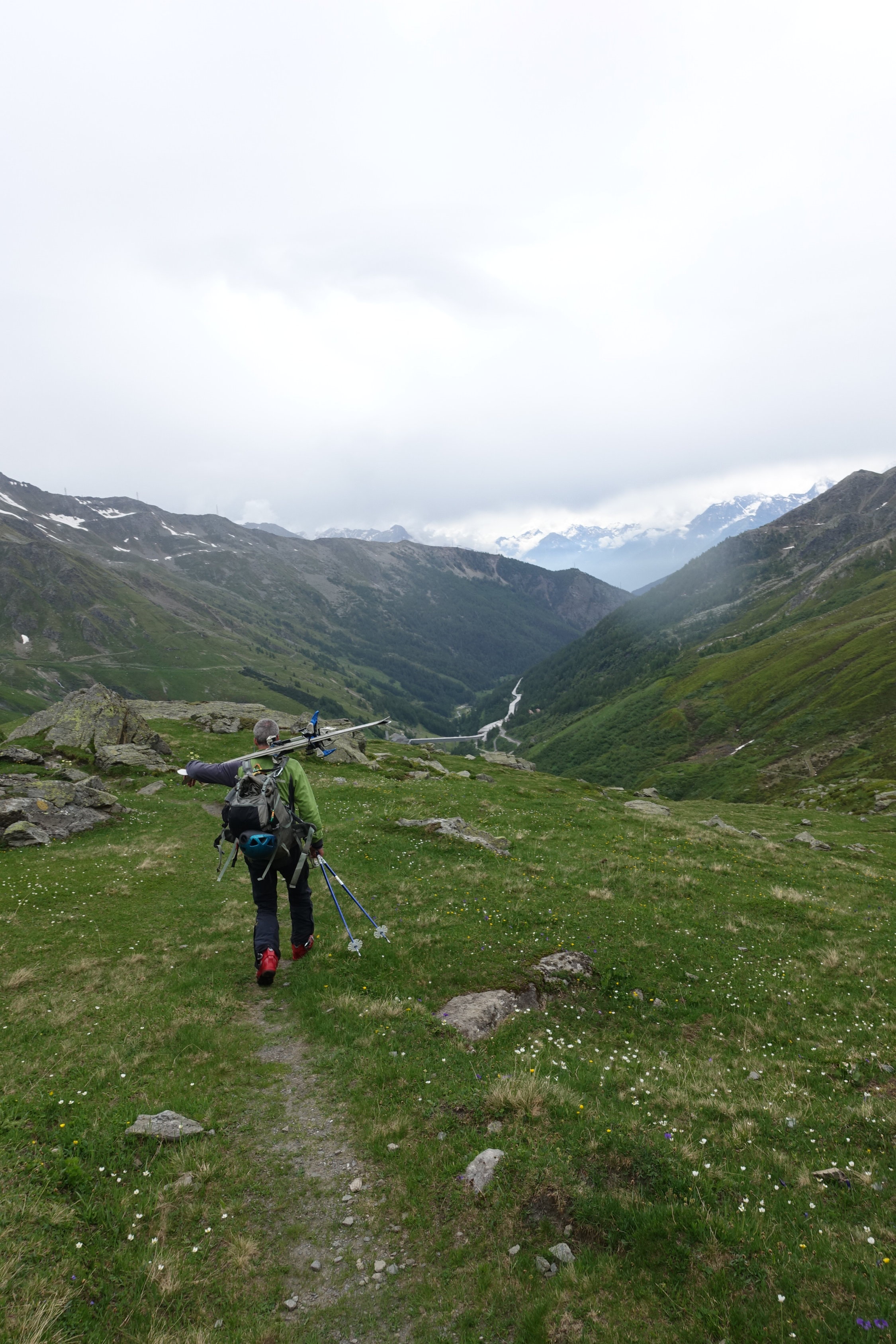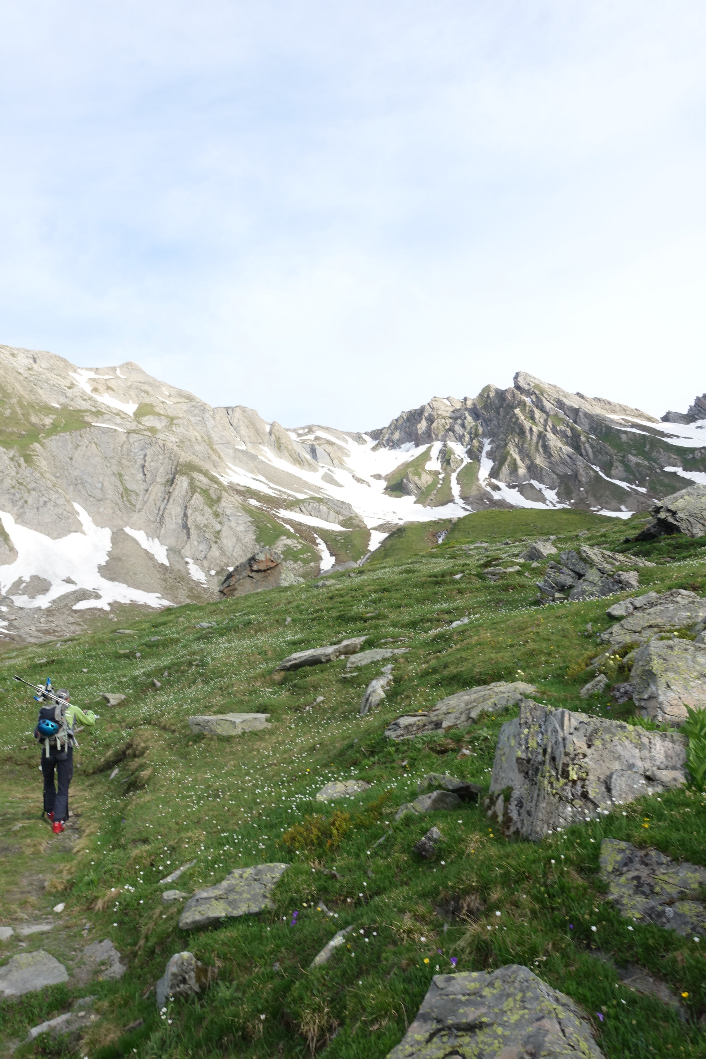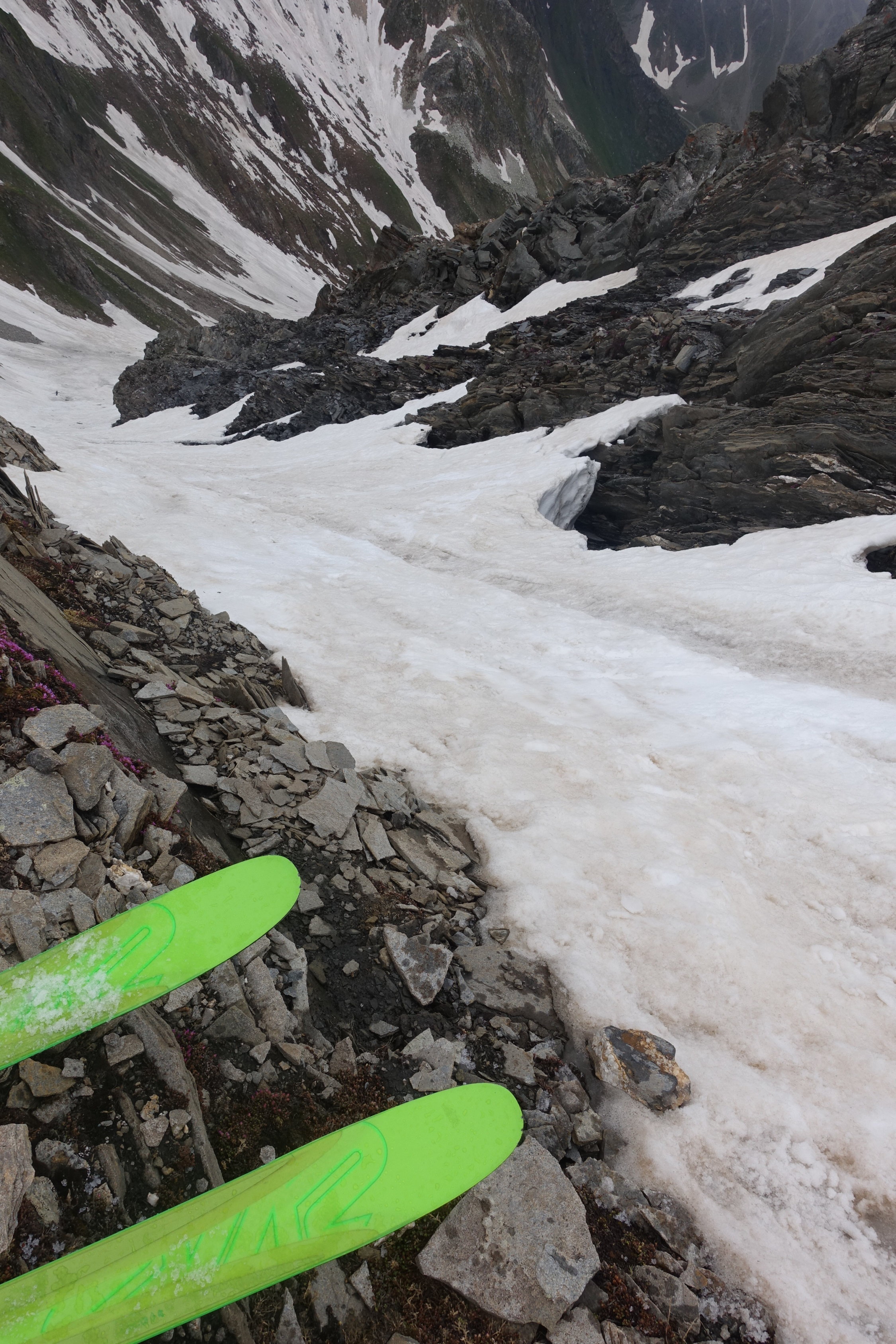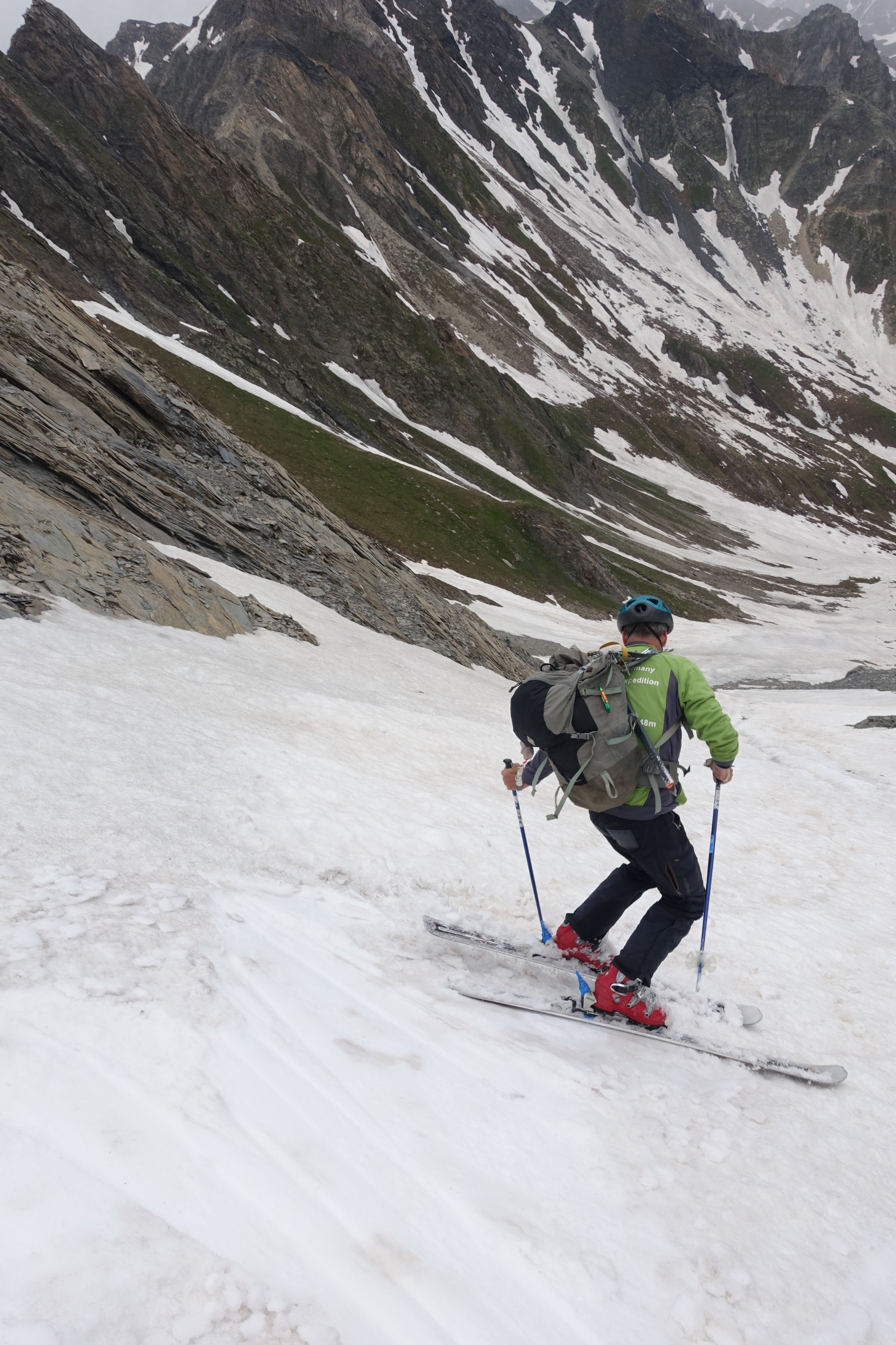 abfahrt gipfelplateau regenrinnen,culi sehr gut aufgesulzt und schön zu fahren, über restschnee bachlauf bis untere alp.1/2 std. zu fuss retour