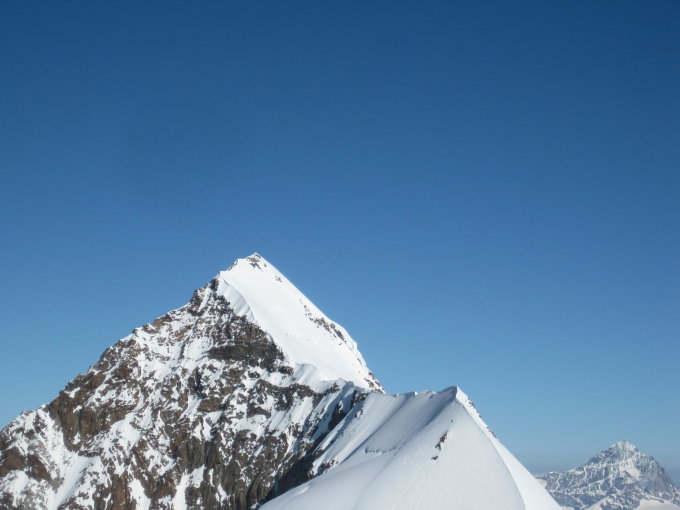 Wir waren vorher noch am Gran Paradiso. Auch dort sind die Verhältnisse ausgezeichnet. Inzwischen hat es auch guten Trittfirn. Die Spalten sind noch gut eingeschneit. Zudem waren wir noch auf dem Pollux. Auch dort sind die Verhältnisse sehr gut.