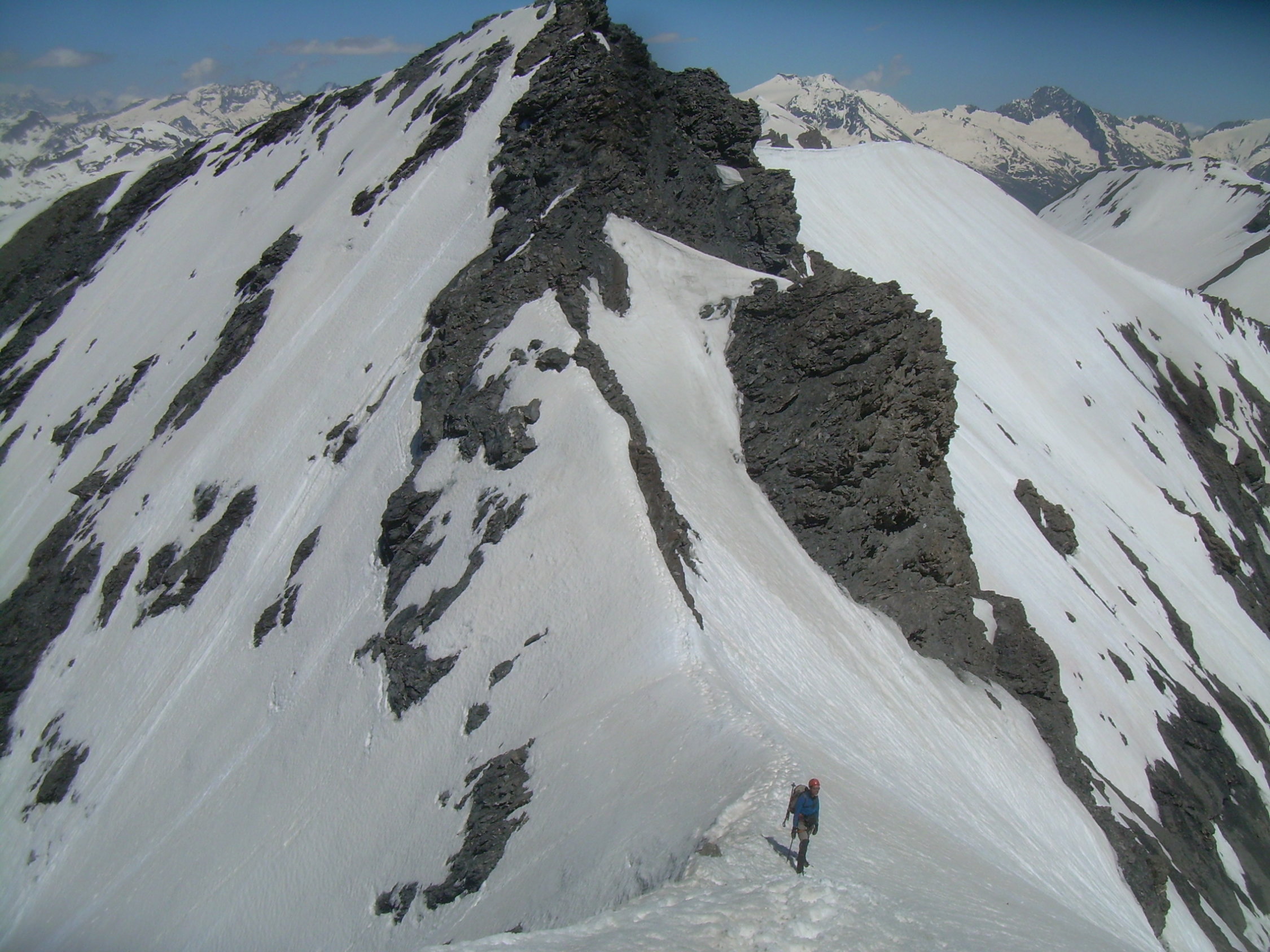 Einmal mehr eine Einsamkeitstour in den Vanoisebergen, wie wir es um diese Jahreszeit dort fast immer erlebt haben - und, offen gesagt, allzu viele Begeher gleichzeitig wären im brüchigen Fels des Gipfelanstiegs auch reichlich unbekömmlich. Schneestapfereien müssen Anfangs/Ende Juni selbstverständlic in Kauf genommen werden, wenngleich der Firn morgens trug und selbst am fortgeschrittenen Nachmittag glücklicherweise nicht ganz aufweichte, so dass ein zügiges und bequemes Absteigen möglich war.