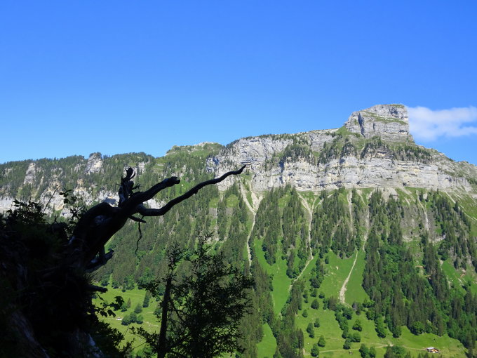Ein Weg durch eine wilde Gegend. Je mehr man aufsteigt, hat man das Gefühl, man sei vom lieblichen Justistal in die Wendenstöcke oder sogar Dolomiten versetzt worden. Und steigt man am Schluss aus dem Hang hinauf an die Sonne fühlt man sich wie in einer Märchenwelt.