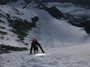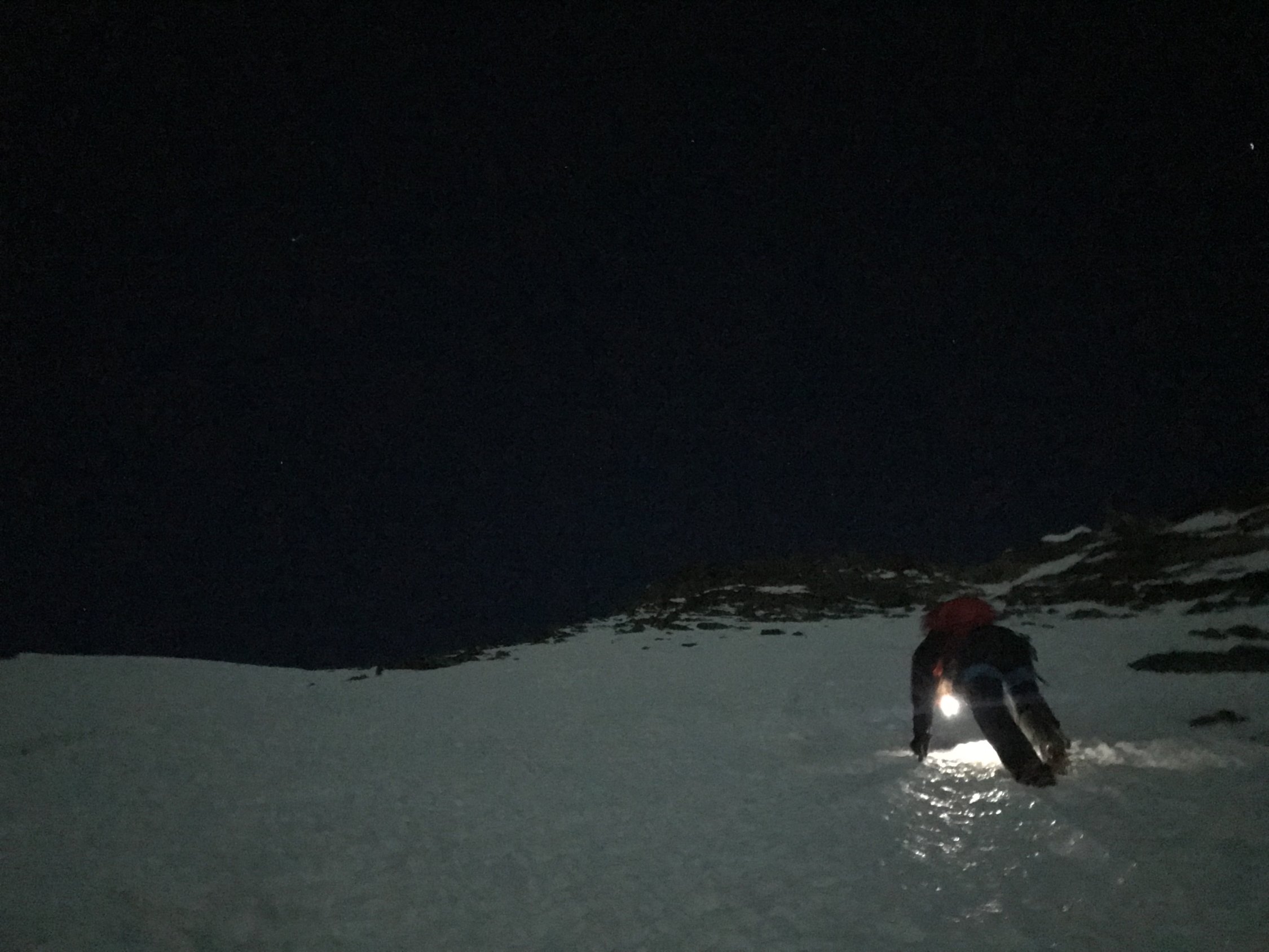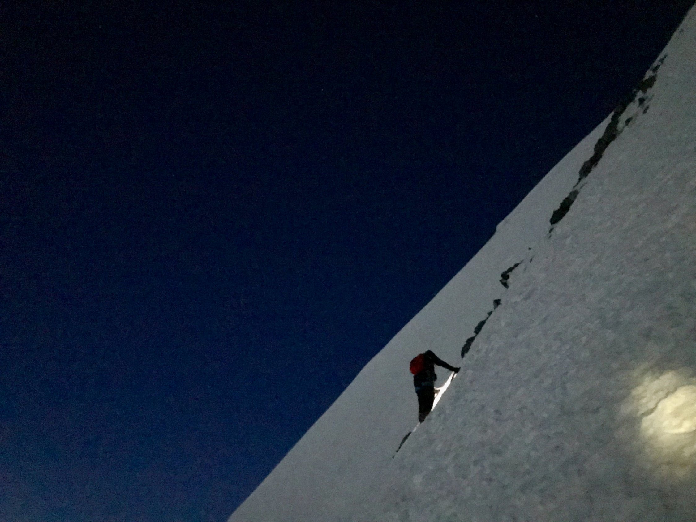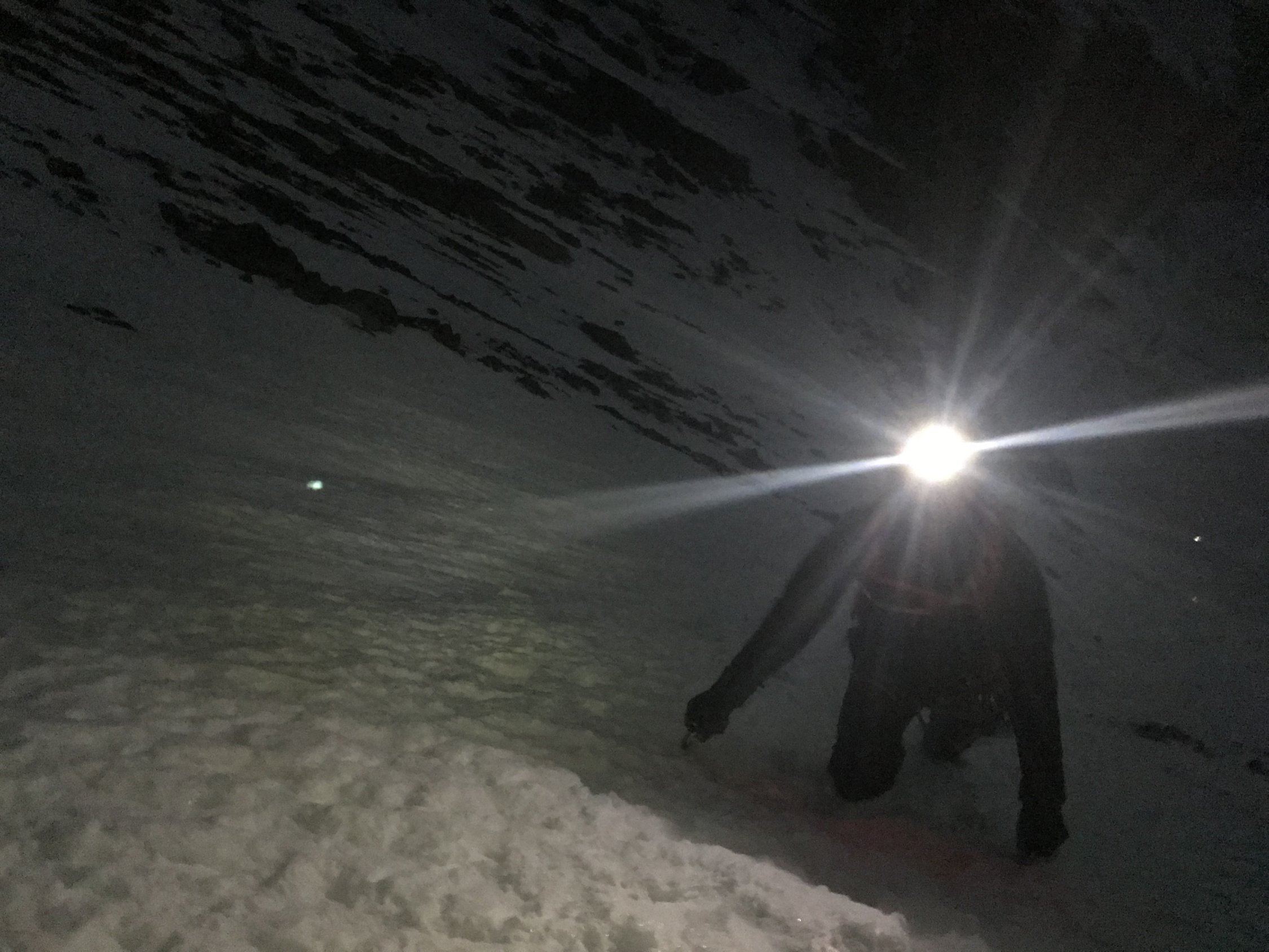 Hinweis; von unten sind die Aufstiegsspuren der Vorgänger nicht zu erkennen, es ist keine "Autobahn-Spur" vorhanden. Die Spur / Aufstieg muss selbst gewählt werden.