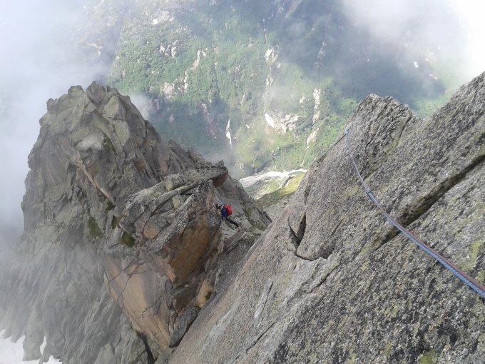 Achtung: wenn die Sonne nicht voll scheint (z.B. Nebel) bleibt der Schnee in dieser Höhe relativ hart. Eine nachfolgende Kletterin ist ausgerutscht und ordentlich in ein Geröllfeld gerast. Ein leichter Pickel oder zumindest Stöcke würden nicht schaden.