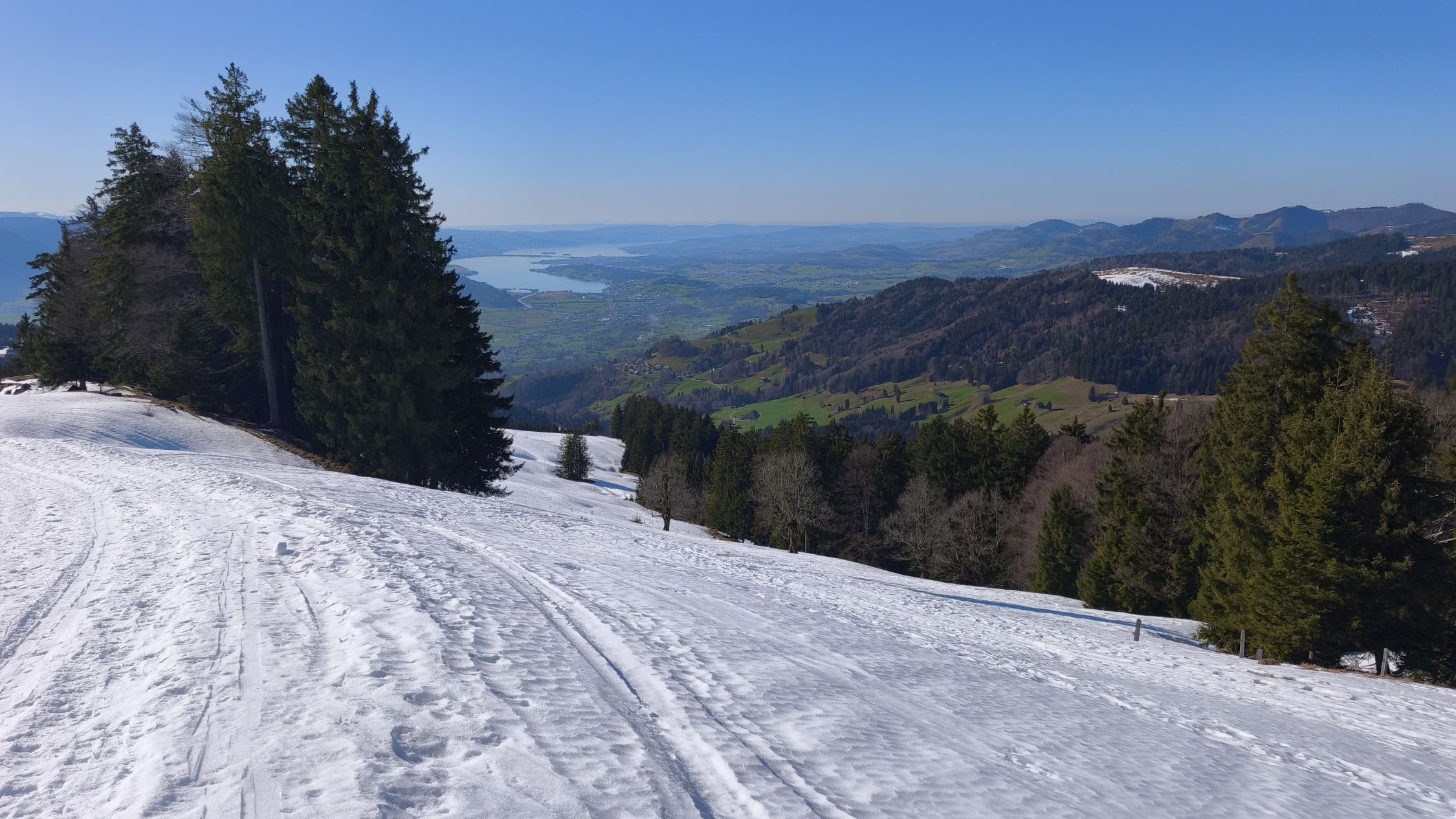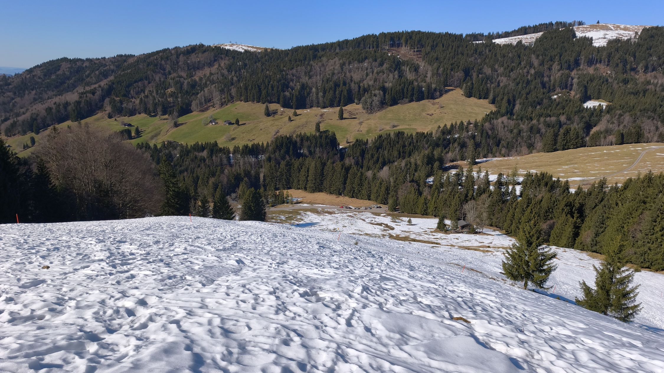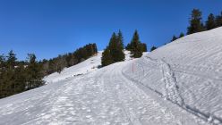 Durchgehend Schnee ab Parkplatz bei guter Routenwahl. Auch zu Fuss gut machbar. Strahlender Sonnenschein und milde Temperaturen. Mit Einkehr auf dem Tanzboden immer lohnend.