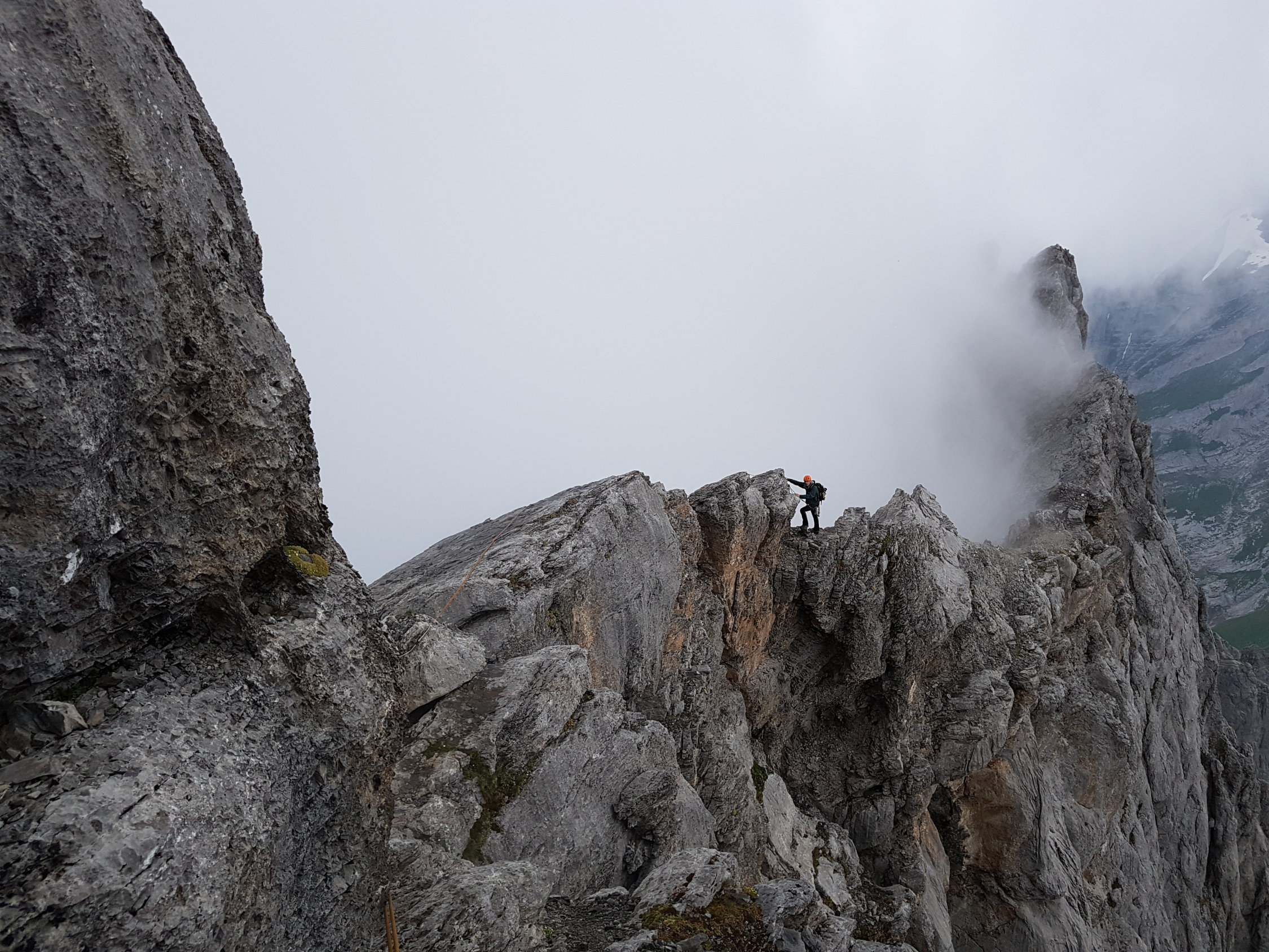 Fels aper, Steigeisen im Aufstieg nur auf den letzten 100m erforderlich. Abstieg Westflanke eine Schinderei, nur unterbrochen durch ablegende Basejumper.