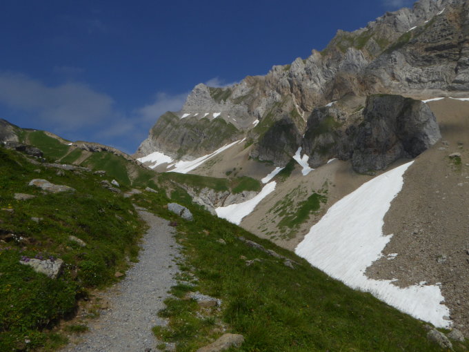 Direkter Aufstieg ab Parkplatz in Wildhaus bis Gamplüt vorteilhafter als Gamplütbahn mit grosser Wartezeit und niedriger Kapazität. Nette Bewartung auf der Rotsteinpasshütte. Weg durch die Fliswand gut versichert und Weg teilweise mit Stufen. Unterhalb von P. 2334 sehr grosse Schneefelder. Helm im Schaffhauser Kamin nicht unbedingt notwendig, da Route gut geschützt oder mit grossem Abstand zur Wand. Hingegen ist ein Einfachseil zum Absichern der unteren (III), sowie der oberen Schlüsselstelle (etwa IV) im Ausstiegsriss sehr hilfreich. Auf der alpinen Route zum Wildhuser Schafberg von P 2334 mehrere steile und grosse Schneefelder, die im Fels enden oder im Geröll auslaufen. Schaffhauser Kamin von der Zwinglipasshütte vorteilhafter. Mit nur 40 Schlafplätzen schwer eine Reservierung zu bekommen.