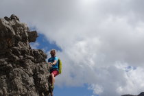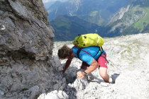 Die Kletterstelle im 2. Grad istnur 2-3 Schritte lang, eine Bandschlaufe für Unsichere von Vorteil.