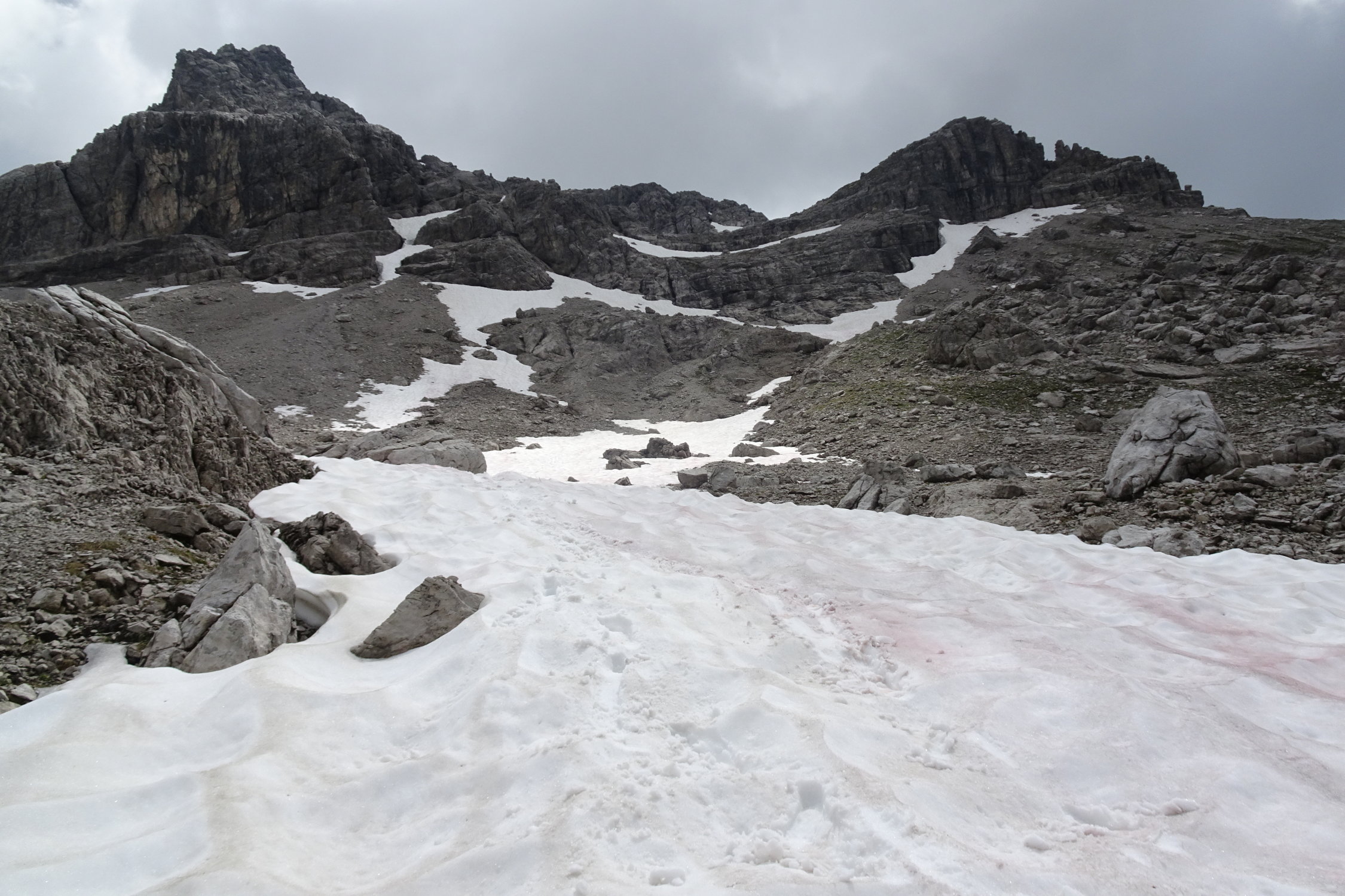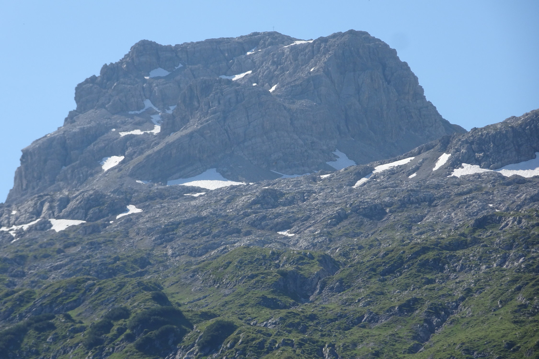 Im Winter wegen Lawinengefahr umgedreht, nun im Sommer den Berg erklummen.