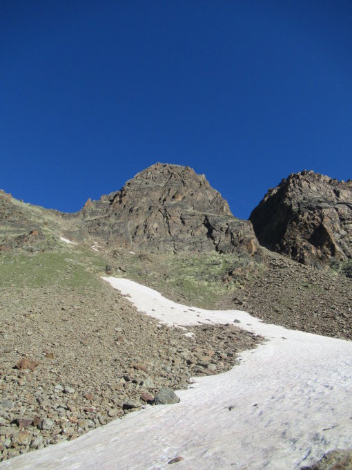 Beim Abstieg sind noch zwei weitere kleine Schneefelder zu überqueren.