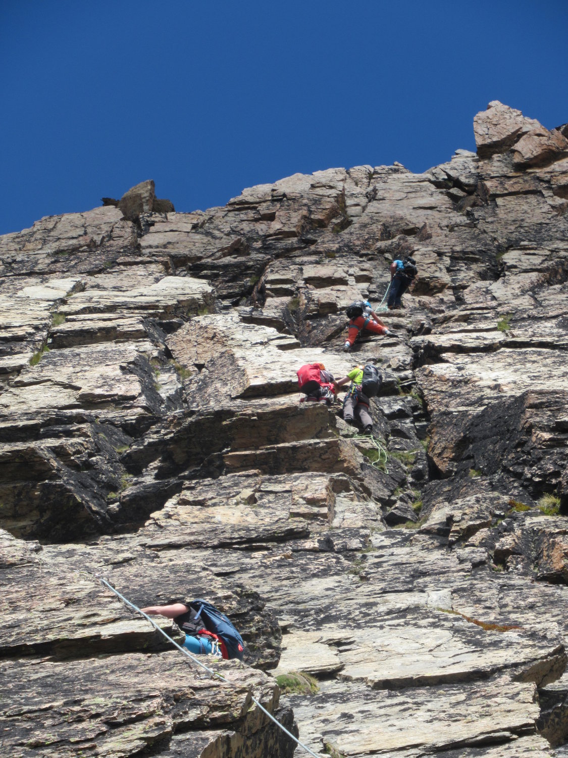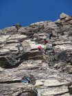Nach dem Abzweiger zum Klettergarten ist noch ein grösseres Schneefeld zum Einstieg zu bewältigen (Kann aber umgangen werden). Ist allerdings kein Problem. Die Route selber ist in einem perfekten Zustand. An dem Tag war nur eine weitere Seilschaft in der Route.