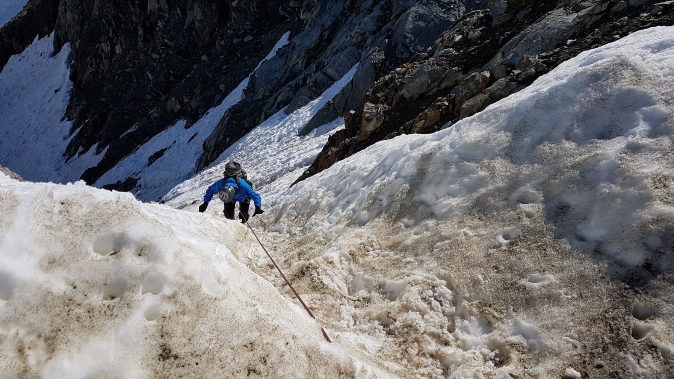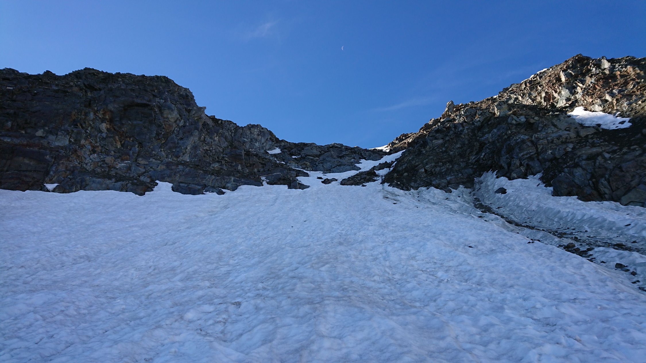 Ein Traumskitouren Tag , was die äusseren Bedingungen betrifft. Passage Militärstrasse Skitragen, dann durchgehende Schneedecke bis zu Grat. Die Schneezunge links hochgestiegen, beim Übergang zum Gletscher nochmals eine kurze Tragpassage. Bergschrund im Steilhang ist noch eingeschneit. Skidepot unterhalb Steilpassage. Ab dort Aufstieg mit Steigeisen und Pickel. Ab Grat Steigeisen nicht mehr zwingend. Das Fellen auf dem Büsser Schnee war anstrengend, für mich stimmte es mit Harscheisen am besten.