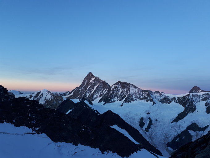 Excellente conditions !! Sentier bien marqué jusqu'à Gagg (3 nevés) à traversée. Glacier (encore) bien bouché. La rimaye passe encore mais plus pour très longtemps... ensuite super rocher (sec) jusqu'au sommet. 17 candidats, tous en haut (je crois).. 5 sont partis pour la traversée sur Lauteraarhorn (+ 1 cordée dans l autre sens). Une course magnifique !!! Très bon accueil à la cabane