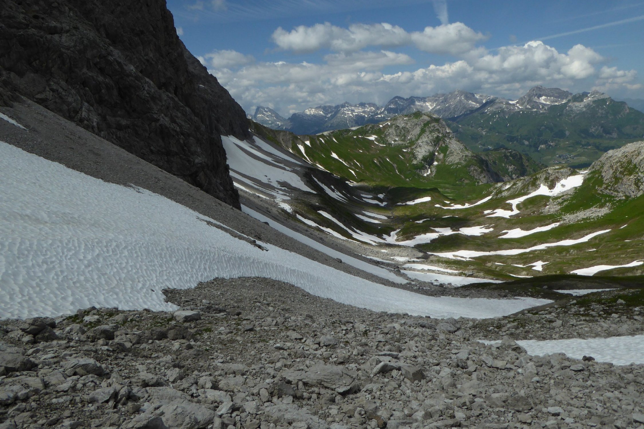 Wetter, Wege alles Top. Beim Weiterweg über Rauekopfscharte waren diverse Altschneefelder ohne Probleme zu queren.
