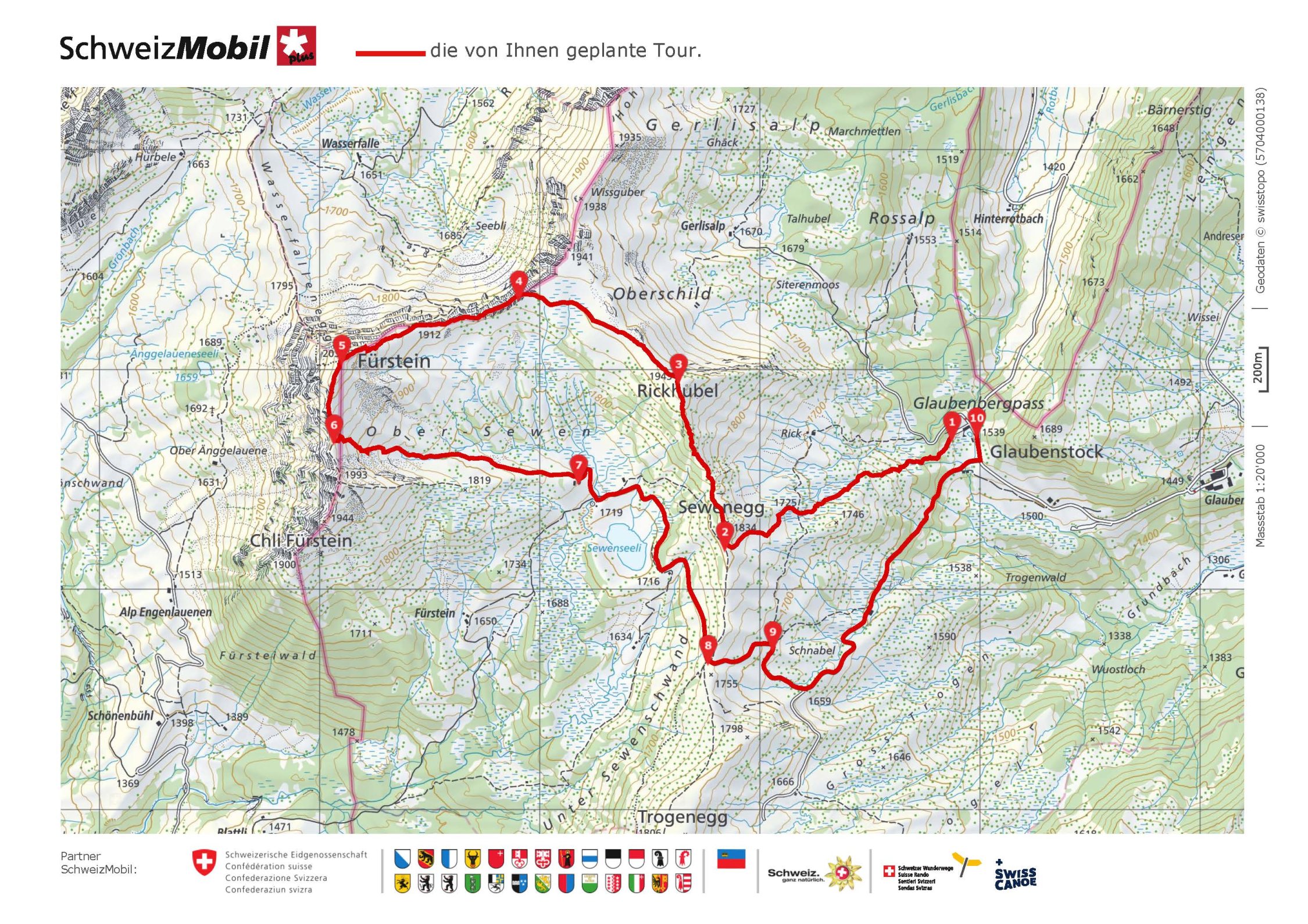 Ab Parkplatz Glaubenbergpass - Sewenegg - Rickhubel - Fürstein - Senke zwischen Fürstein und Pkt 1993 - Kapelle Pkt 1719 - Übergang unterhalb Punkt 1755 - Glaubenbergpass