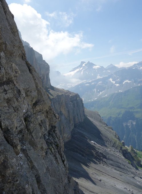 Beste Verhältnisse beim Zustieg, der Kletterei/Überschreitung und dem Abstieg übers Untere Band. Dort noch Schneefelder, welche aber unter der Felswand "hintergangen" werden ... diese könnten früher im Jahr heikel zu queren sein.