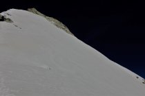 - der Gratteil ist abschnittsweise ausgesetzt und schmal, vereinzelt schmale Schneebrücken, gute Trittspuren