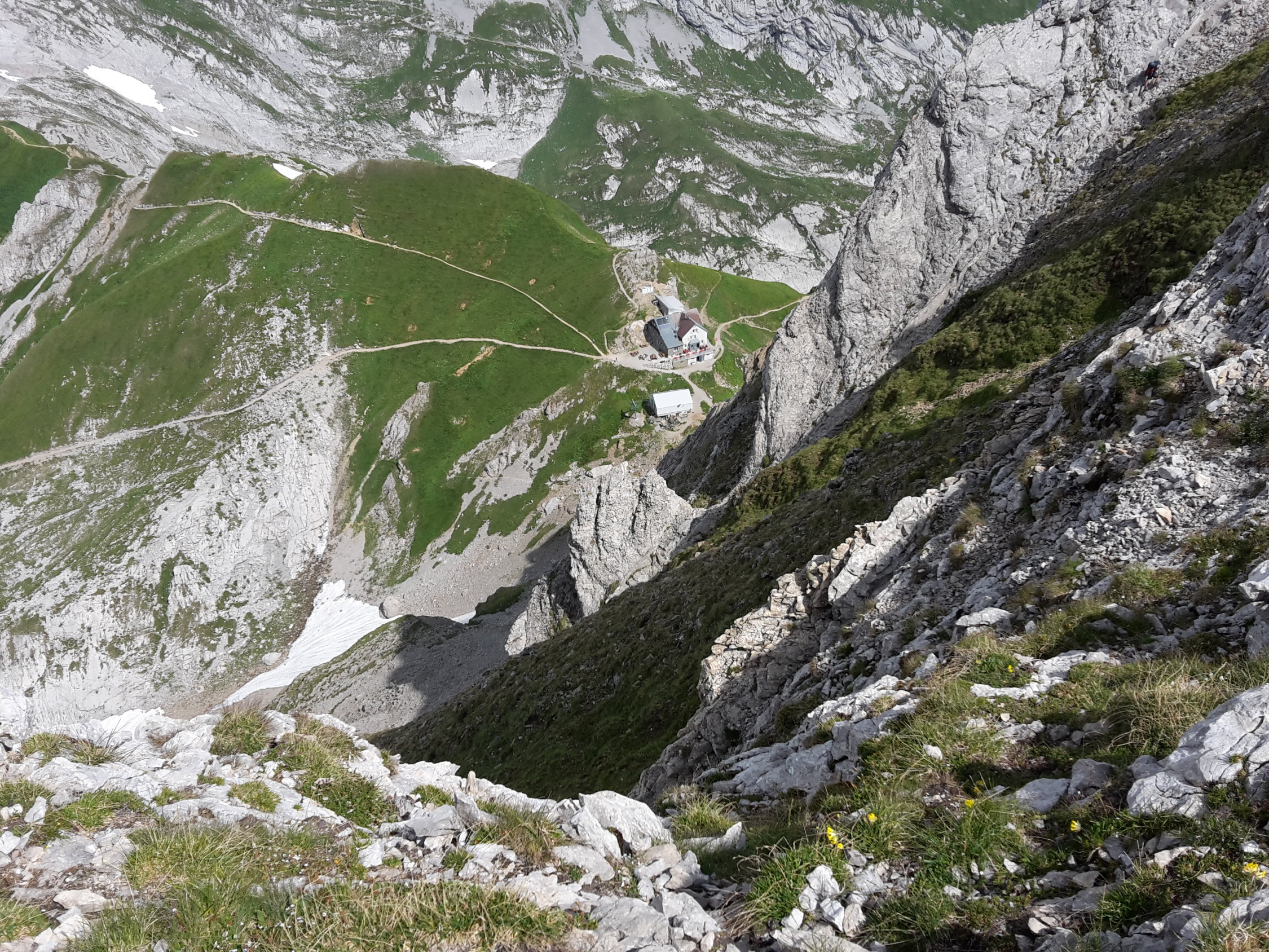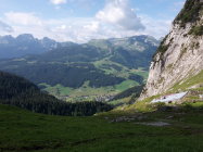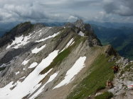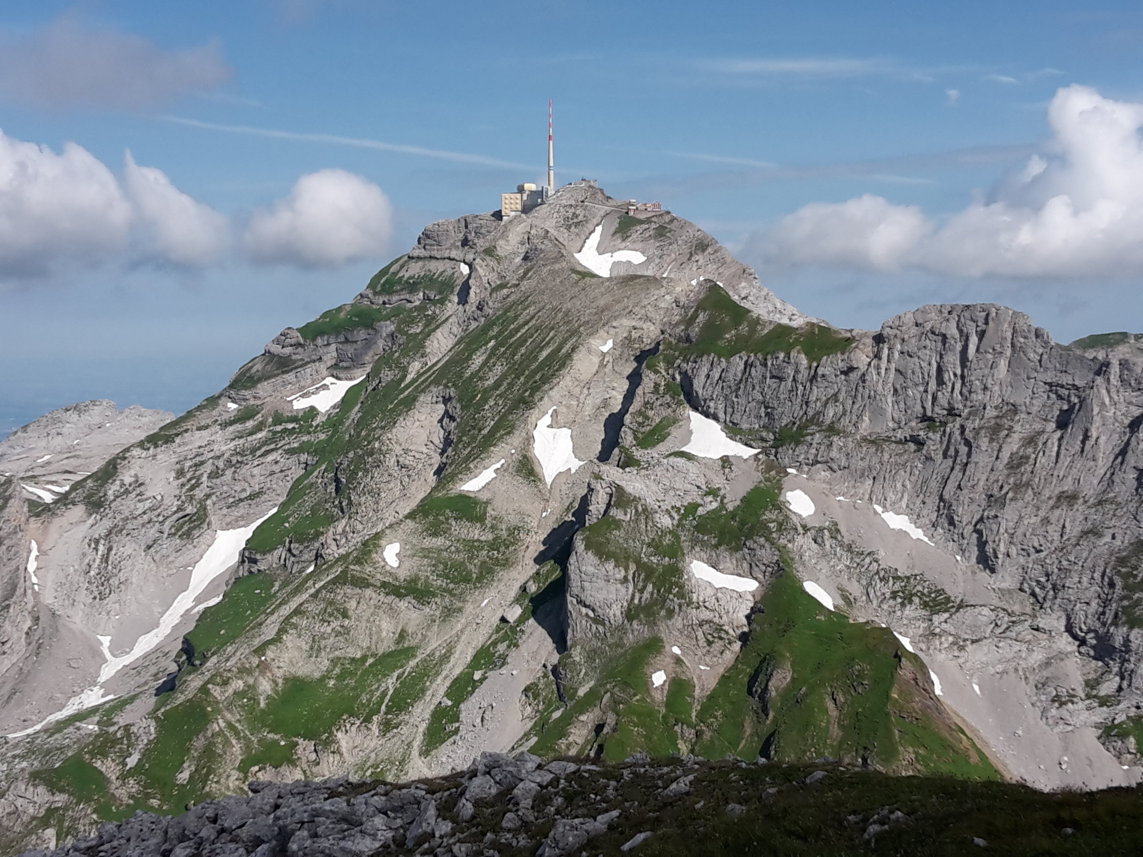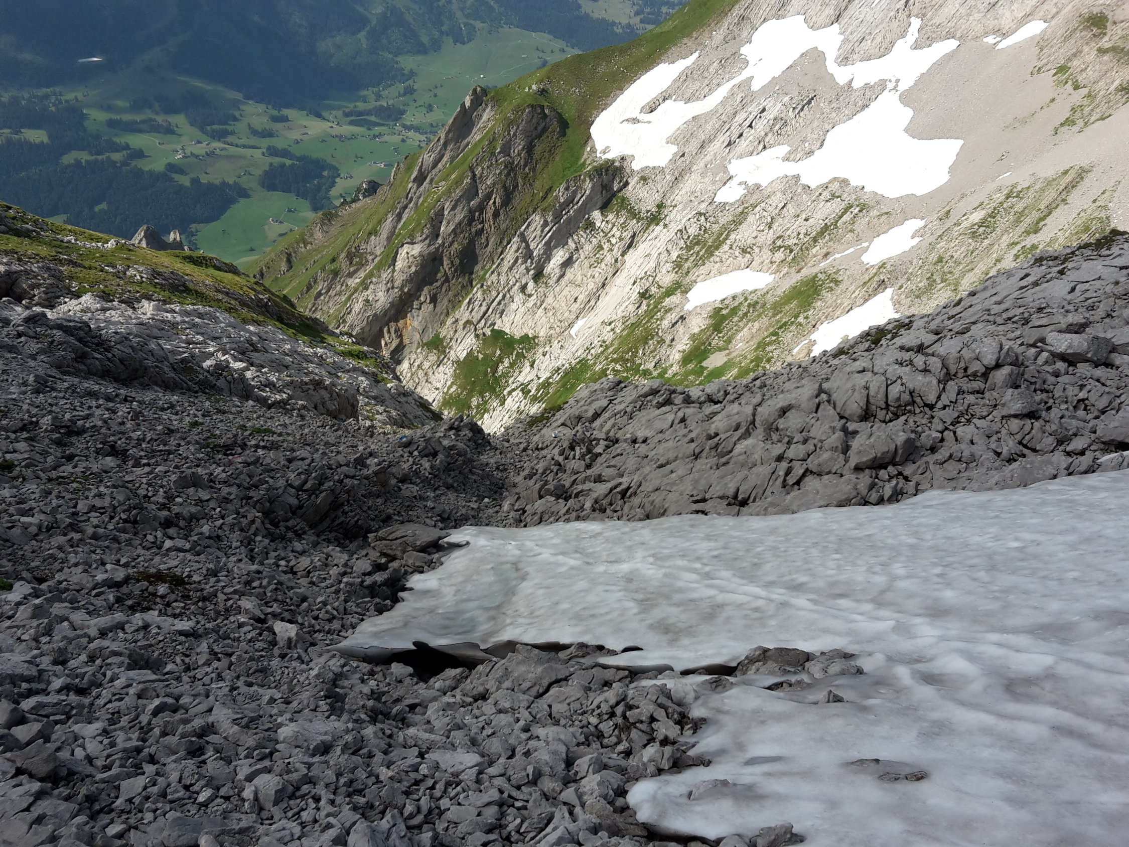 Start um 8:30 in Wildhaus, auf dem oberen Wildhauser Schafboden liegt noch das obligate (etwas mühsame) Schneefeld, sonst ist die Route schneefrei (die Route zum Schafberg führt z.Z. immer noch über ein Schneefeld), im Aufstieg durch die geröllige Halde zum Jöchlisattel wurde ich von einem jungen Steinbock überholt, man wird halt älter ... Steinböcke waren überhaupt sehr zahlreich, im Abstieg war eine 25 köpfige Herde beim "sünnele" anzutreffen. Der Nädligergrat verlangt etwas Vorsicht und Trittsicherheit, ist aber unschwierig. Abstieg zur Zwinglipasshütte für einen Boxenstopp und dann via Alp Tesel und Gamplüt zurück nach Wildhaus.