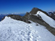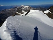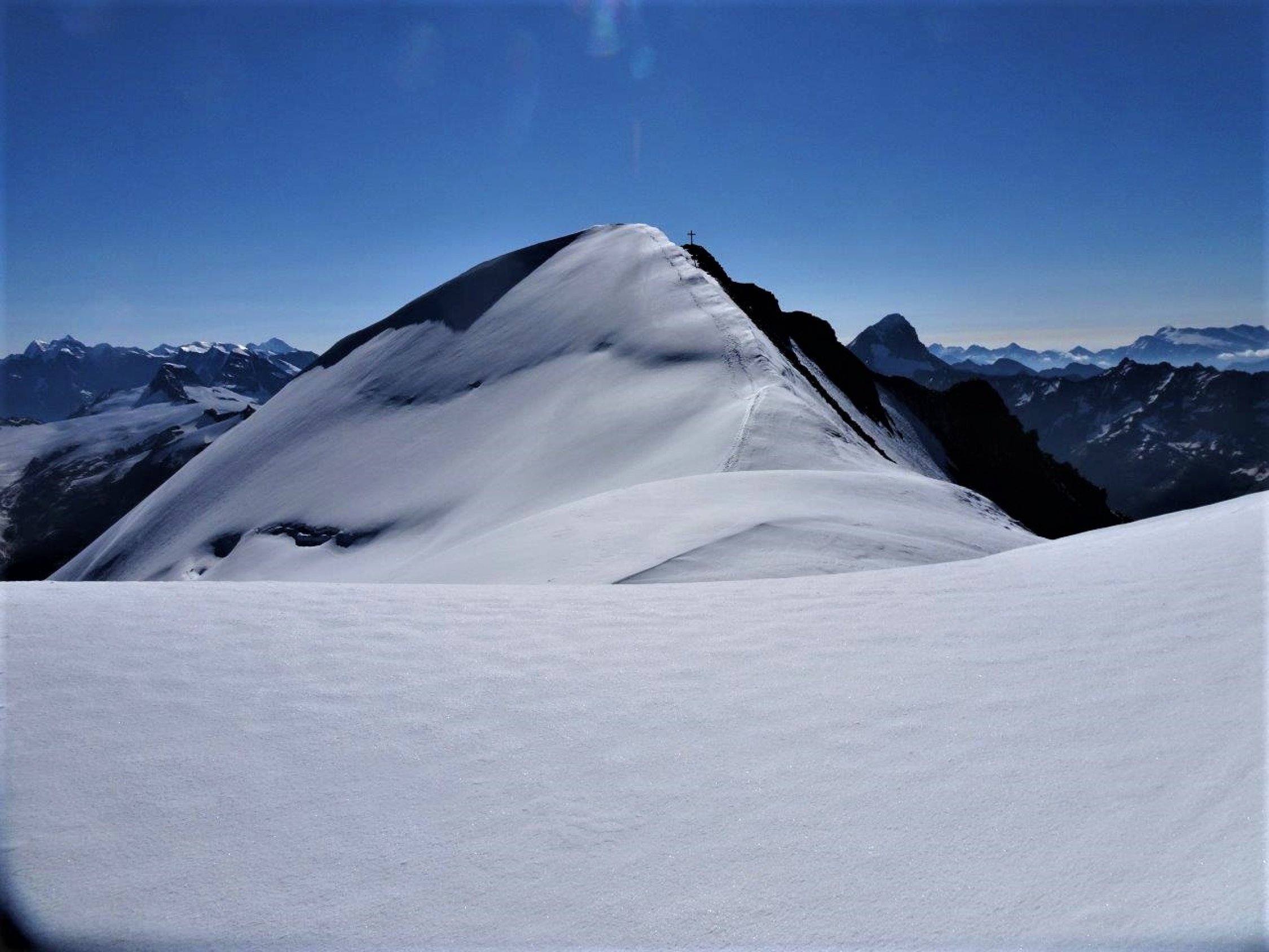 Start um 4.15 Uhr nach klarer und kalter Nacht. Schnee auf der ganzen Route gefroren und trittfest. Der Zustieg zum Zackenpass dank einiger Schneefelder (bereits ab 2200m) auf dem Schwarzgletscher angenehm. Der Zackengrat ist aper und wird länger und länger. Die Schneeflanke zum Vorgipfel betritt man auf ca. 3350m. Im Aufstieg und auf dem Gipfel frischer Wind. Abstieg nach einer Stunde Pause um 10.15 Uhr. Der Steilhang ab Zackenpass etwas aufgeweicht aber problemlos im Abstieg. Für den weiteren Abstieg zur Spittelmatte liegen im Graben der rechten Moräne noch grössere Schneefelder. Zur Zeit lohnt sich die Tour dank der noch vorhandenen Schneefelder für den Auf- und Abstieg.