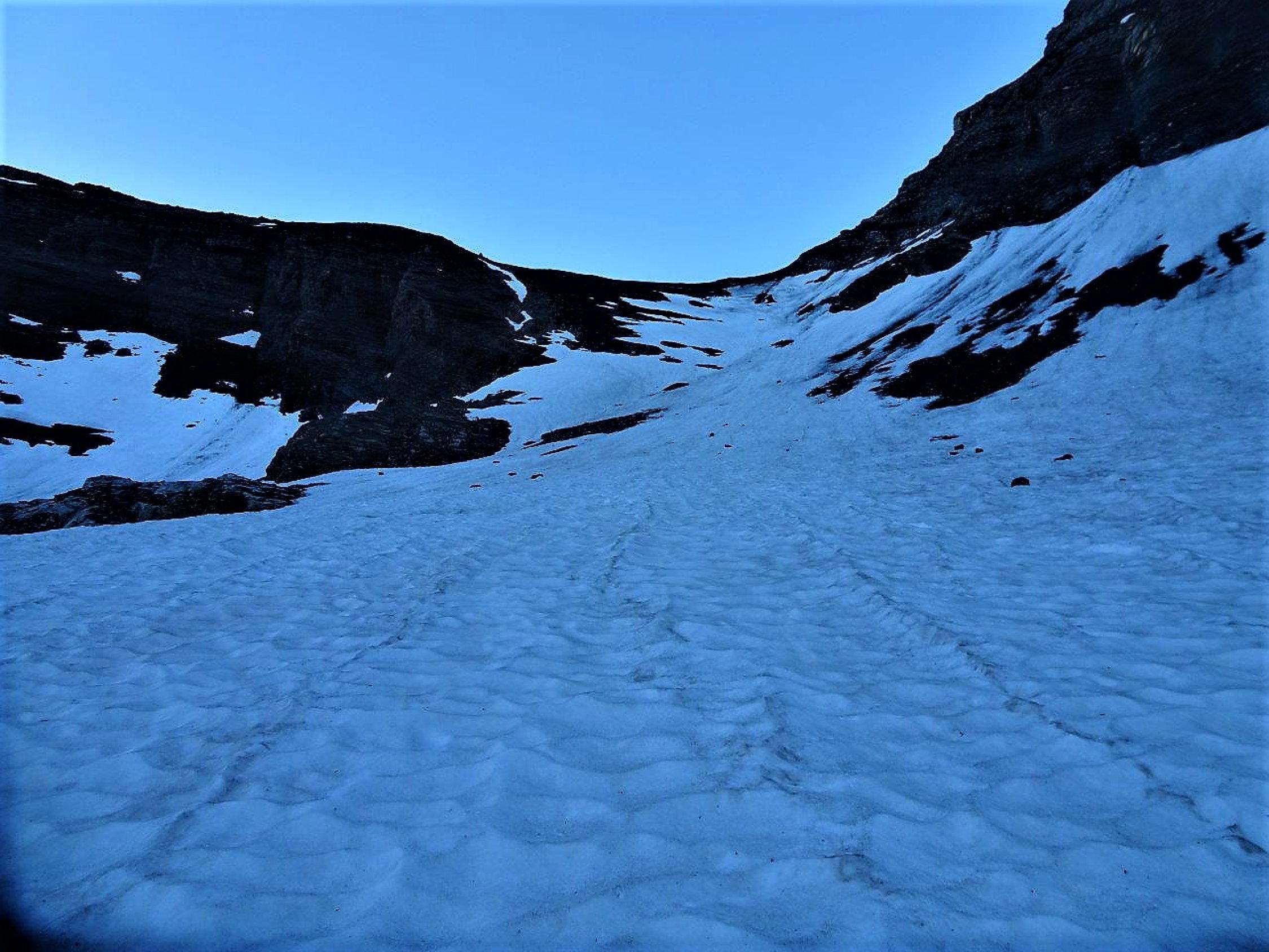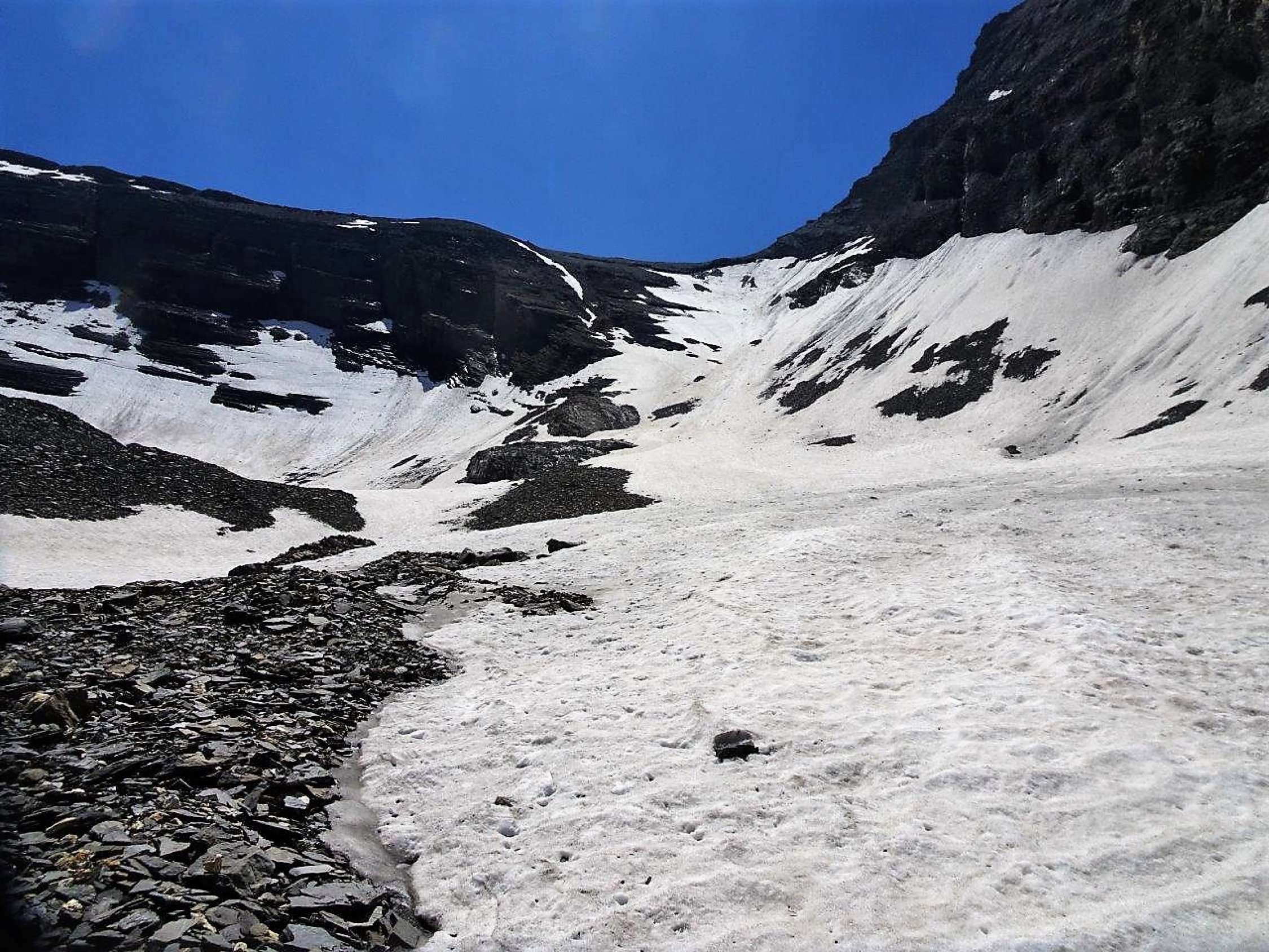 die wilde Blocklandschaft im "Täli" wurde in letzter Zeit durch Geröll zu geschüttet. Daher ist der Zustieg schon besser geworden - dies auch Dank der zur Zeit noch vorhandenen Schneefelder.