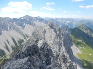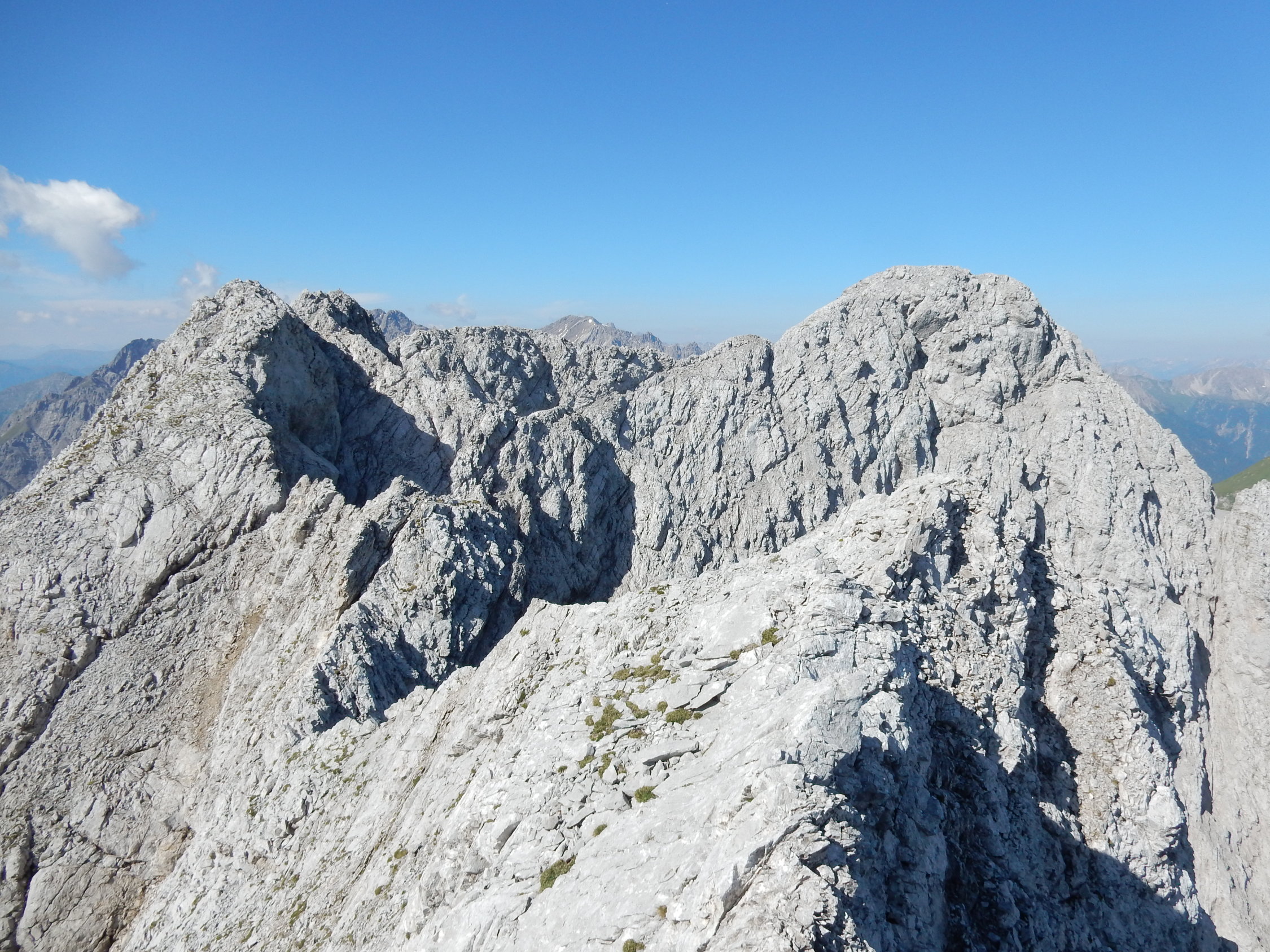 Ein langgehegter "Traum" wurde endlich umgesetzt. Als Gesamterlebnis schon toll, aber zweimal bräuchte ich das nicht. Die im alten Groth-Führer angesetzten Schwierigkeitsangaben sind insgesamt zu hoch. Ca. 60% Geh- oder Ier- Gelände (laut Definition), 30% II, der Rest III. Wenn man also IVer und Ver in allen Lebenslagen drauf hat, sollte es keine Probleme mit dem Klettern geben. Am besten folgt man immer exakt der Gratschneide, sowohl im Auf- wie im Abstieg. Nur beim Abstieg vom Heiterwandegg sowie von der Westlichen Alpeilspitze ist dies aus meiner Sicht problematisch und man muss sich südwärts gerichteten Schotterrinnen und -schrofen ergeben. Den (im Netz mehrfach thematisierten) Abstieg vom Heiterwandturm dagegen fand ich harmlos, fast ausgeputzt und gut mit Steinmänner markiert. Auch fordert dessen Besteigung vielleicht gerade einmal 20 min Auf und Ab (II+).