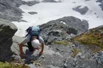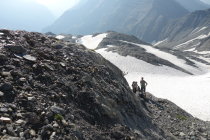 Der kurze Gletscherteil zwischen dem Ende der Moräne und dem Einstieg zum Mittelgrat ist mit gutem Trittschnee bedeckt. Der Mittelgrat wie auch die Verbindung Piz Sardona - Piz Segnas sind schneefrei. Beste Verhältnisse auf der ganzen Tour.