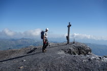 Am Mittelgrat ist ein durchgehend verlaufendes Drahtseil installiert. Eignet sich sowohl als Handlauf als auch als klettersteigähnliche Absicherung. Mit einem Klettersteigset kann der ganze Mittelgrat gesichert geklettert werden. Ein Partieseil erübrigt sich demnach.
