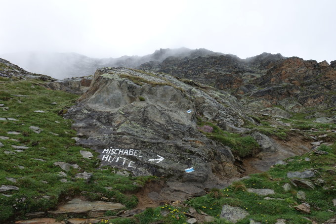 Die Wolkenobergrenze war im Abstieg noch in etwa auf der gleichen Höhe wie im Aufstieg, bei ca. 3600m. Nach einer kurzen Rast in der Hütte folgte noch der lange Abstieg durch die Wolken nach Saas Fee. Wie im Aufstieg natürlich auch im Abstieg ohne Bahnunterstützung. Das erste Drittel des Abstieges kostet einfach seine Zeit, da man den versicherten Weg doch mit Bedacht begehen muss. Auch nach so einer tollen Tour muss man sich hier noch konzentrieren. Das Hüttenpersonal ist super nett, man fühlt sich willkommen und sehr gut aufgehoben.