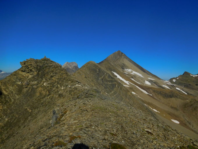 Heute sehr schönes Sommerwetter, die Temperaturen waren sehr angenehm zum Wandern, wir haben beim Abstieg durch die Südflanke entlag einer Schutthalde abgekürzt, die Schlüsselstelle war heute schon nach einigen Minuten erreicht, eine Herde Mutterkühe griff uns an.
