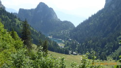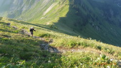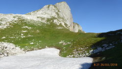 Schönes Wetter, warm, windstill. Wege und Steine am Morgen unterhalb des Gipfels wegen gestrigen Gewitters (?) schmierig und nicht so schön zu gehen. Ansonsten gute Wege mit klarer Wegfindung. Unterhalb der NE-Wand des Gipfels ein abschmilzendes Schneefeld, das ausgesetzt berührt wird. Tolle Rundumsicht auf Genfer See, Montblanc, Dents du Midi, Gran Combin, Muveran, etc.. Leider heute etwas disig. Auf der Route heute relativ ruhig und wenig Leute.