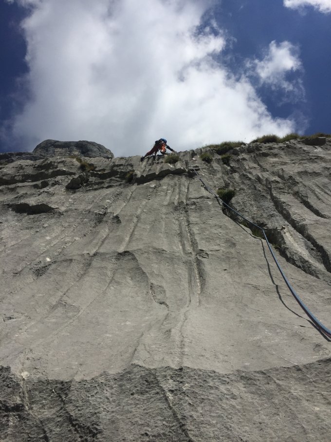 Ich finde: Tolle Route - die Grasbüschlein und paar Grasbänder tun der Psyche gut. Christoph findet: Zuviel Gras - aber alle 6a+ und die 6b+ machen es wett. So unterscheiden sich halt die Hardcors von den andern..;-). Ponstan sei Dank hat meine Ferse auch einigermassen mitgehalten. Aber ich würde die Route gern wieder machen ohne Schmerzen. Das schönste: Noch nie so viele Edelweisse getroffen unterwegs. Und zum Abschluss gabs auch noch den Blutmond.