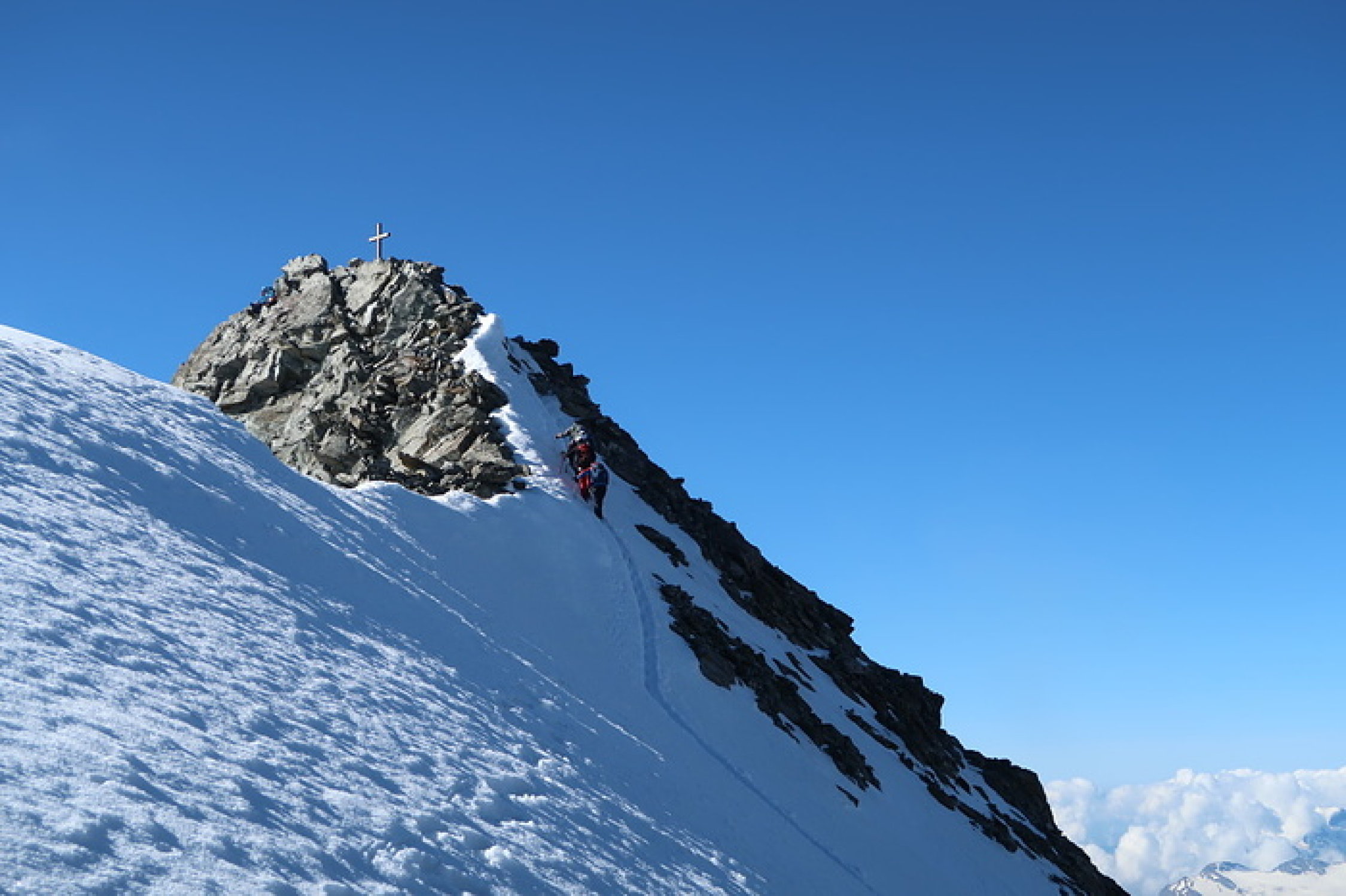 Die letzten Meter zum Lagginhorn sind in guter Spur und Trittschnee zu begehen.