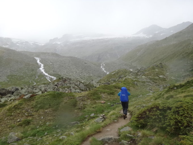 Abseilen zum Gletscher: Nach den Platten von der Wellenkuppe hinunter führen einen praktisch Steinmänner einen Weg hinab zu letztlich zwei richtigen bzw. drei Abseilständen. Der Weg zur Moräne bzw. dem Geröllfeld vor dem Gletscher ist hinab nicht mehr so leicht auszumachen wie es von unten eben leicht/logisch zu erschliessen war. Wir gingen also den Steinmännern entlang und kamen zu einer Abseilstelle. Nach dem Abseilen ein paar Meter Laufen über ein "Grätli" zu einer Eisenstange (von Weitem zu erkennen). Hat man ein 60m-Seil wie wir es hatten, so reicht es zum Fixseil (von dort wenige Meter zum Gletscher). Man seilt leicht links von der Schneise überhängend ab in diesem Fall. Sonst fanden wir in der Schneise noch eine Reepschnur um einen Block vor, an der dann praktisch abgeseilt werden muss, wenn man ein kürzeres Seil hat. Ich erwähne das hier extra, denn leider ist das vor Ort nicht deutlich markiert oder erwähnt.