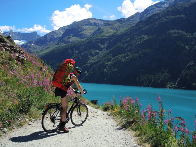 Eine Traumtour an einem Tag mit bestem Wetter! Den Hüttenaufstieg haben wir mit Fahrrädern bis zum Ende des Staussees Lac des Places de Moulin abgekürzt. Man kann noch ein Stück weiter als das dortige Rif. Prarayer fahren und die Räder irgendwo im Wald lassen. Das Val Valpelline ist wild und wunderschön! Obwohl sich der Aufsteig ganz schön in die Länge zieht, kann man ihn echt genießen.