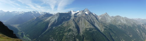 Diese Panorama-Route bietet Aussicht auf das ferne Matterhorn im Norden, den Gran Paradiso im Süden und Montblanc im Westen.