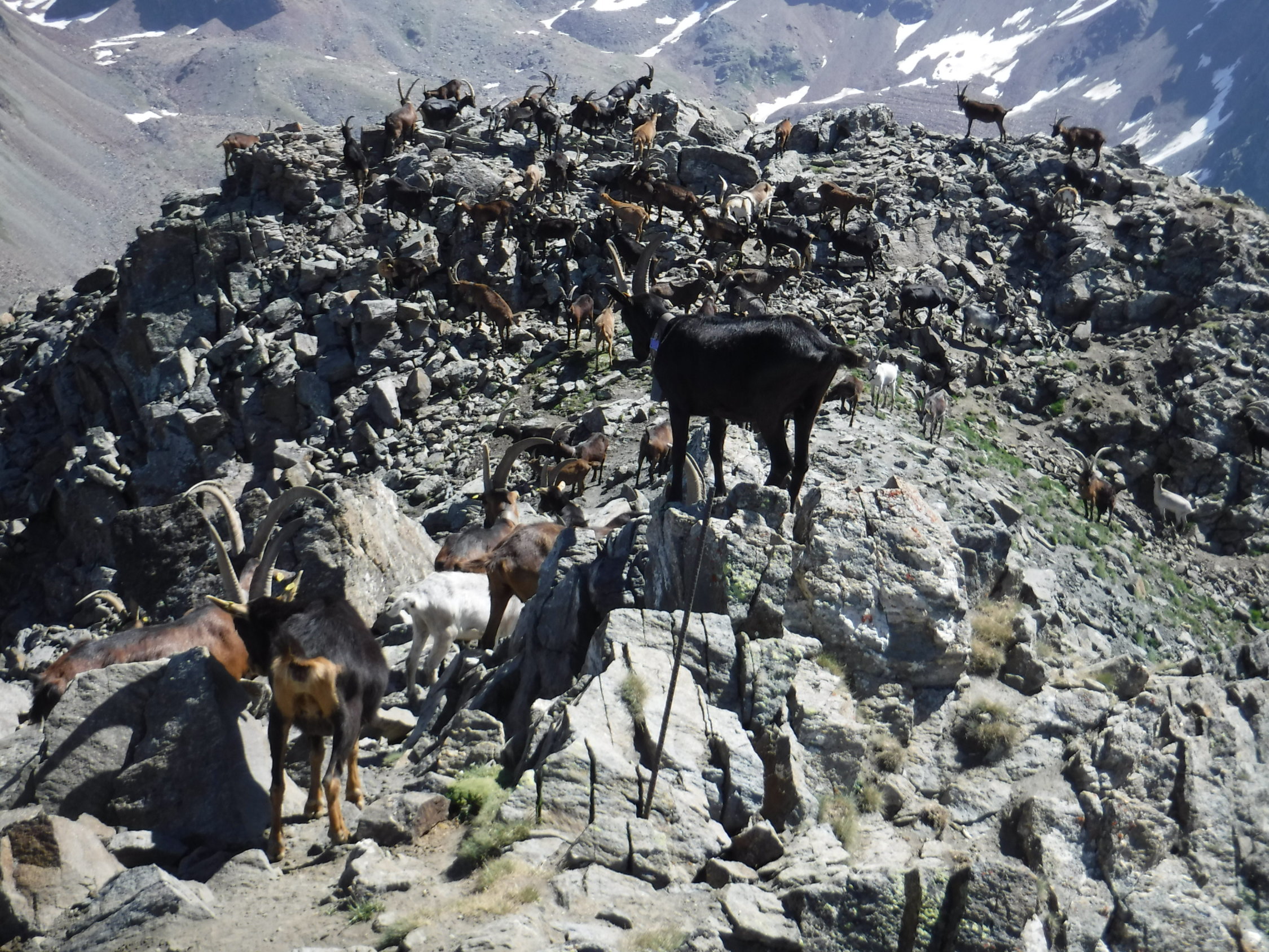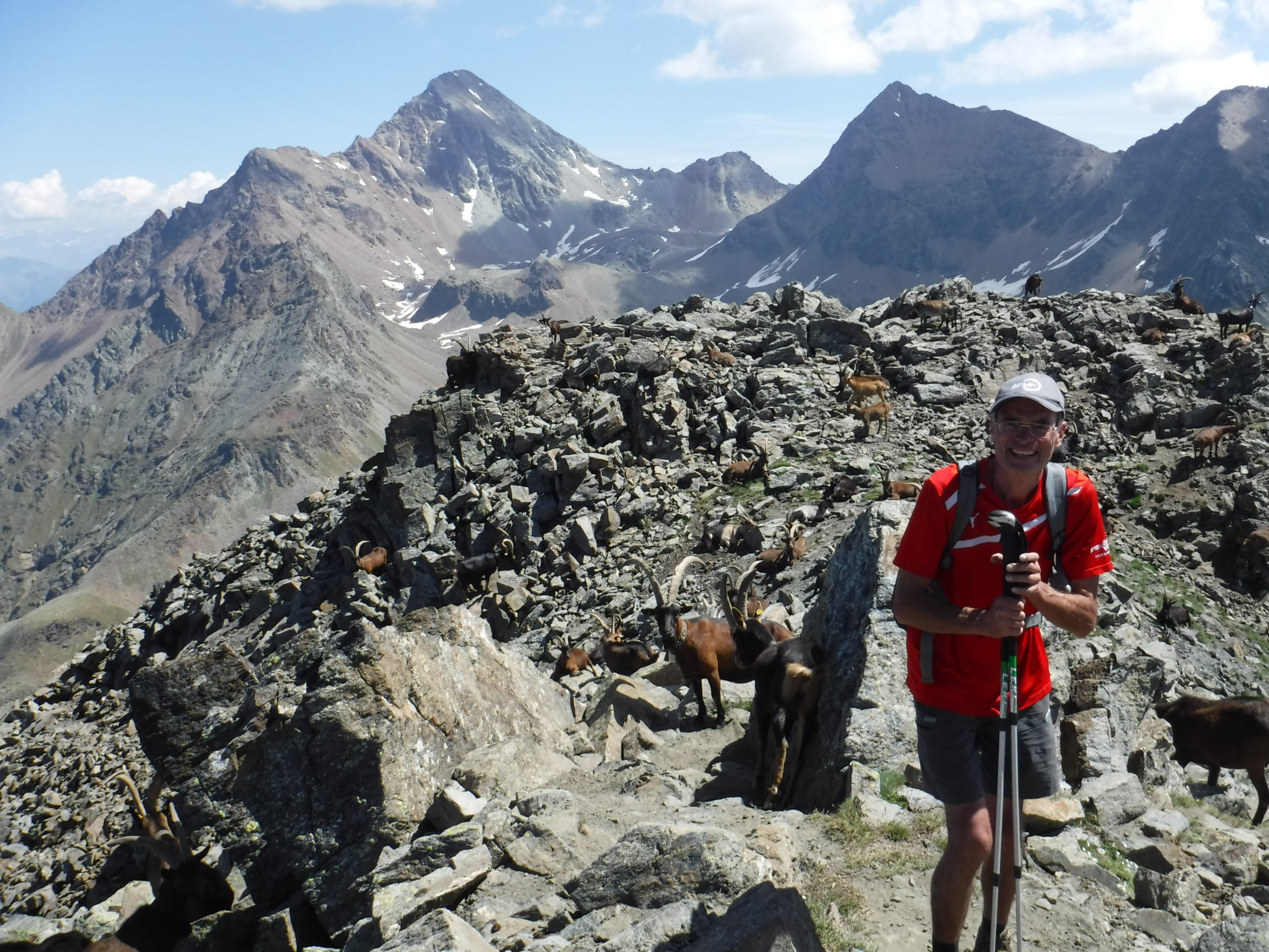 Den Gipfel nahmen über friedliche 100 Bergziegen in Beschlag. Im Abstieg kam mir ein Trailrunner entgegen und ein betagter Senior, der zum Xten Mal über den Nordgrat hochstiefelte.