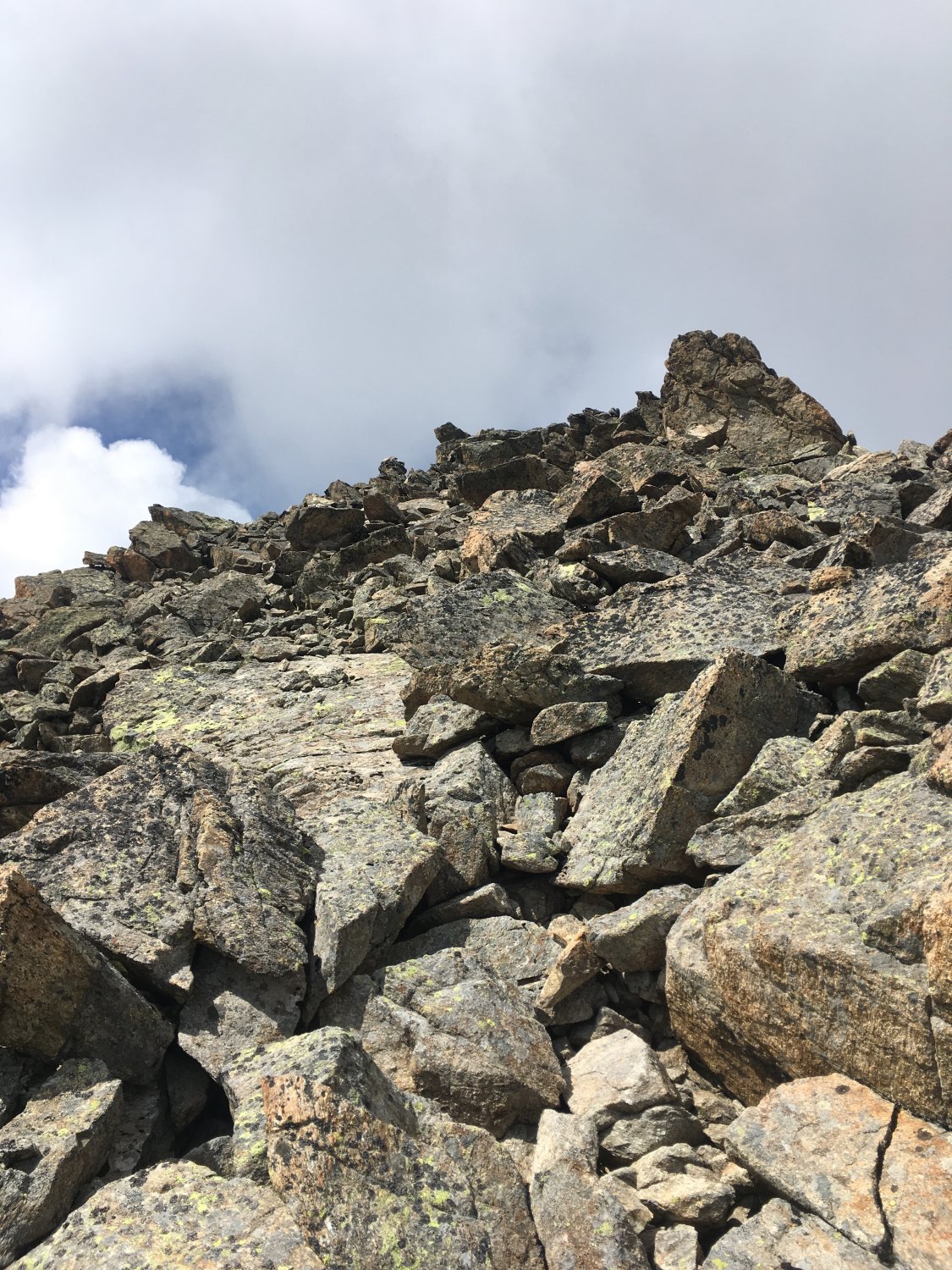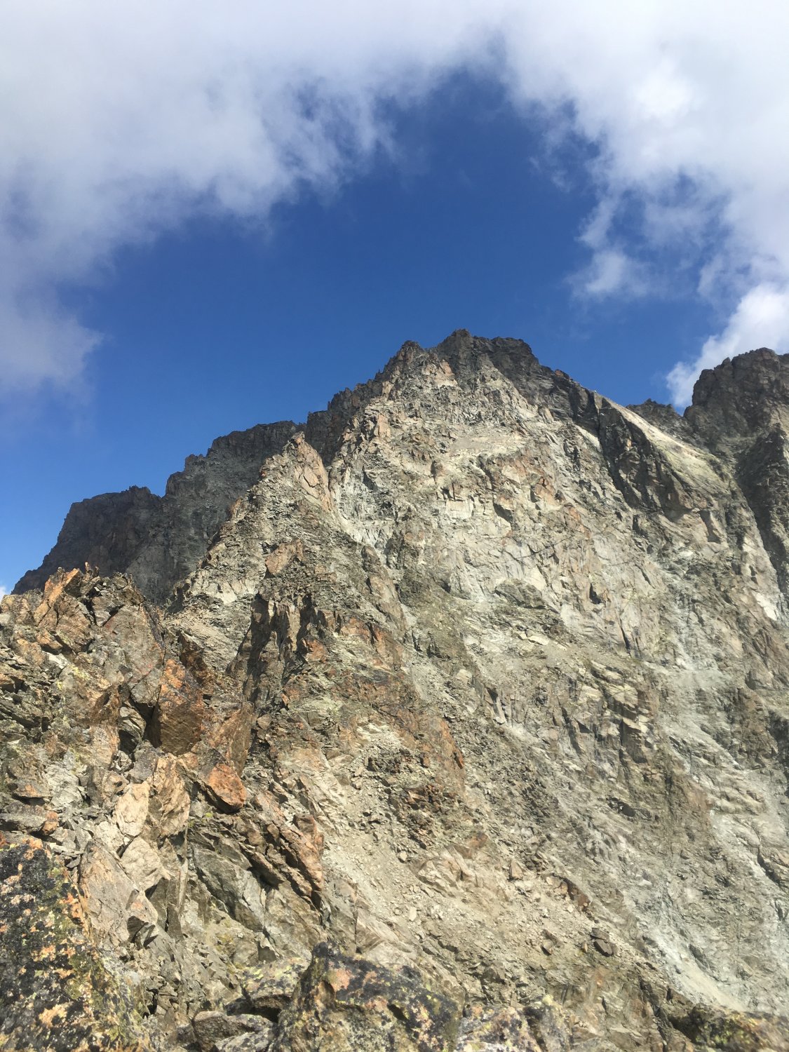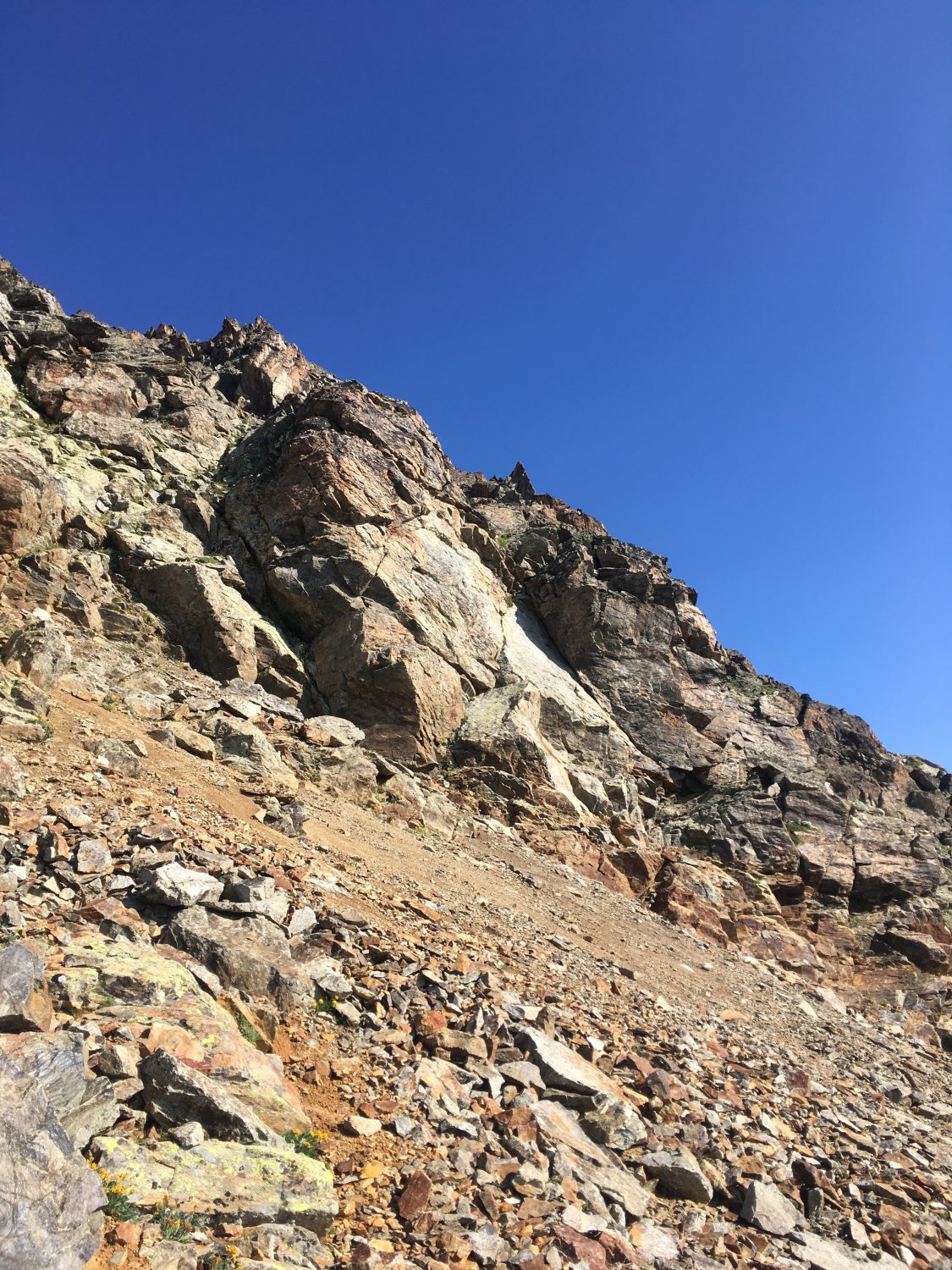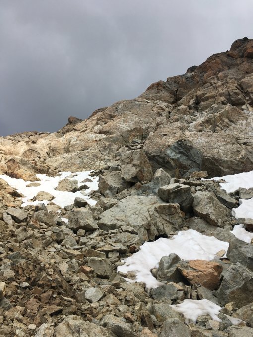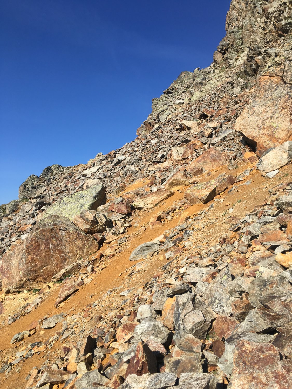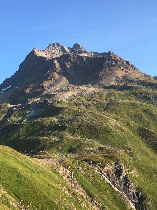 Start um 6.30 Uhr, 9 Grad, windstill. Bis P. 2777 angenehmer Aufstieg auf Wanderweg und Weiden. Ab P. 2777 markanter oranger Sand und im gerölligen Couloir viele lose Steine. Am besten hält man sich im Aufstieg rechs an soliden roten Felsen (T4). Ab P. 2987 Blöcke und Geröll, aber angenehm im Auf- und Abstieg. Keine technischen Schwierigkeiten. Abstieg wie Aufstieg. Die Tour kann auch ab Chamanna Es-Cha 2594 m gemacht werden (3 Stunden).