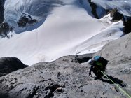 Rosenlauigletscher noch gut eingeschneit. Wir traversierten die grösstenteil ausgeaperte Spaltenzone unterhalb des Ränfenjochs zeitaufwändig aber machbar von SW nach NO. Abstieg im Gletschertal bis auf 2900m und anschliessender Aufstieg auf 3000m im Firn (Spalten) vermutlich schneller.