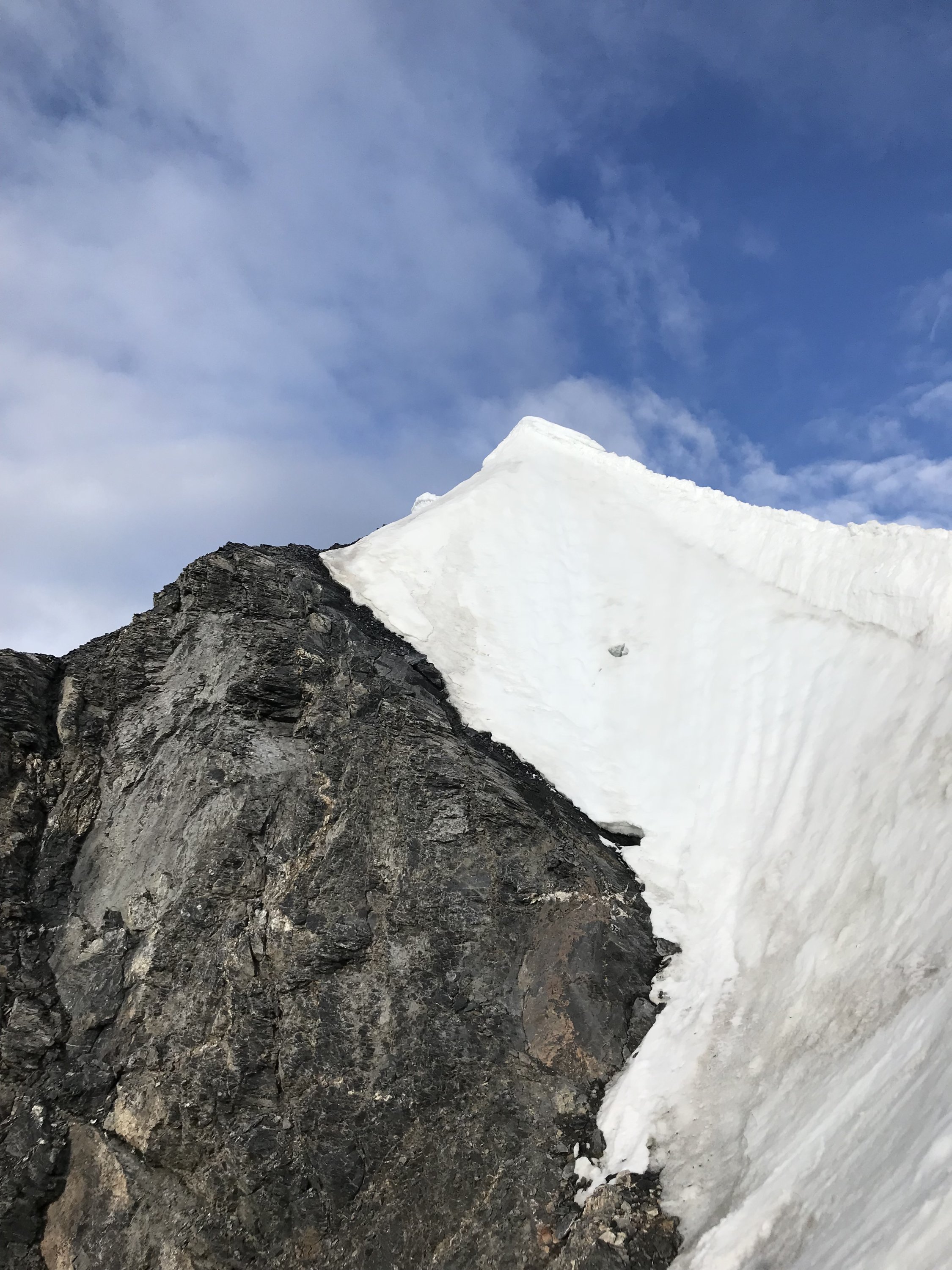 Man kann bis auf den Eiger im Fels gehen, man braucht die Steigeisen nur in den Eigerjöcher für 2 Firnfelder (gute Trittespuren aber eisig) und den Abstieg zur Mönchsjochhütte.