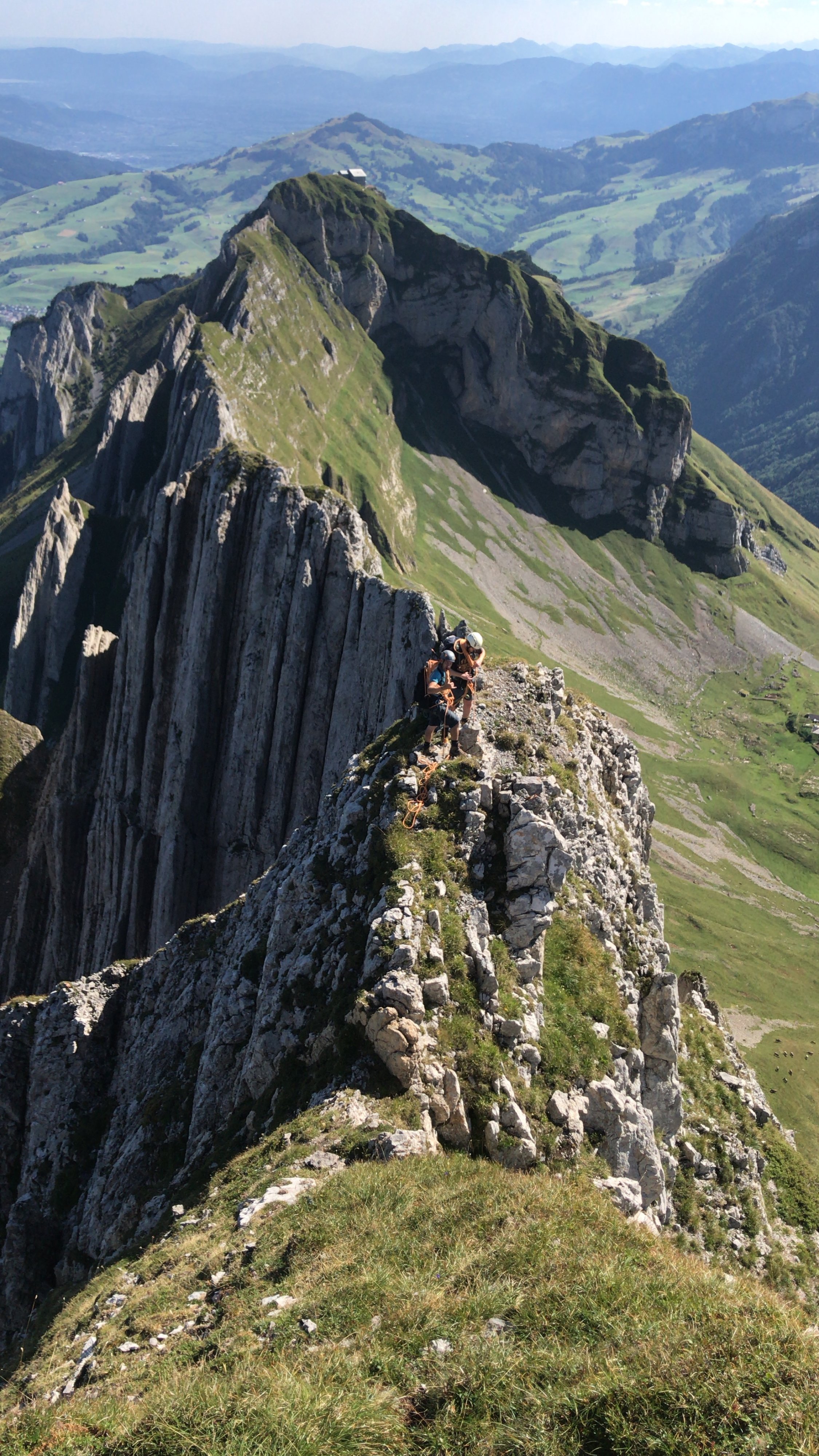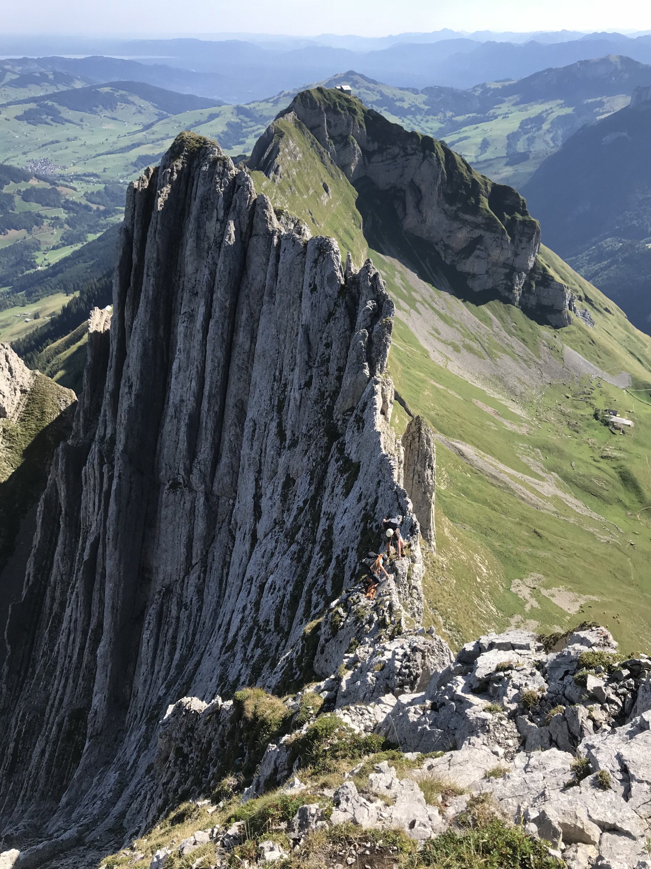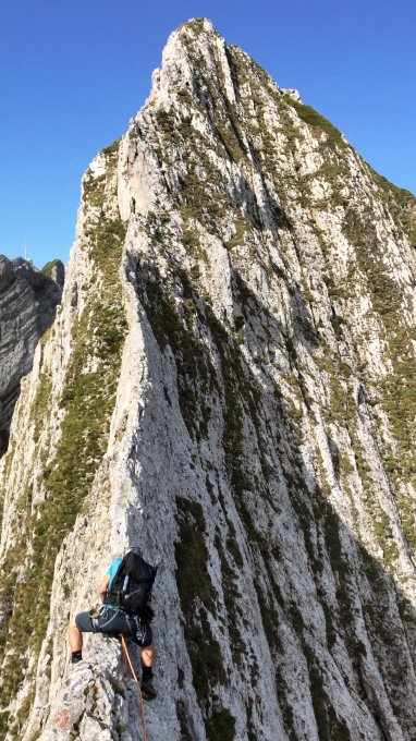 Wir starteten von der Ebenalp mit Altenalptürme Überschreitung und Abseilen mit 4x 60m Seil. Weiter zum Öhrli und die Hüenerberg mit Girenspitz Überschreitung zum Säntis. Dazu benötigen wir 7:30 mit zügigem vorankommen.