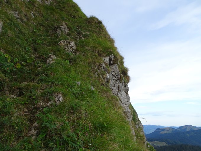 Aufstieg Chammhalden ziemlich feucht und schmierig vom gestrigen Regenguss. Bis P.1577 noch ganz gut, dann etwas rutschiger und die teils vom Gras verdeckten Tritte verlangten mehr Vorsicht.