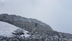 Start der Tour am 7.20 Uhr am Stilfser Joch, die Temperatur 10 °, die Ski mueste man ca. 45 Minuten tragen, dann entlag der Skipiste zum Skidebot der Geisterspitze, leider war dichter Nebel, nach kurzem Fussaufstieg über den Grat konnte der Gipfel gut erreicht werden, bei der Abfahrt löste sich der Nebel zum Glück wieder auf.