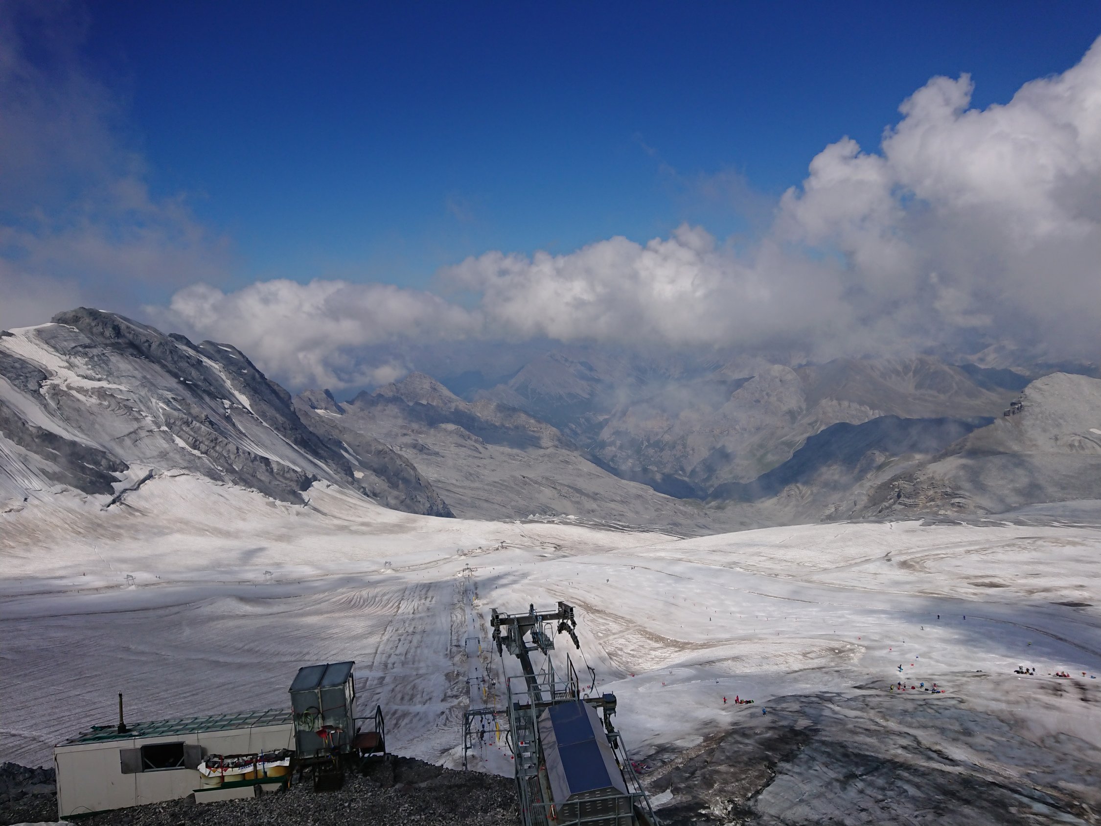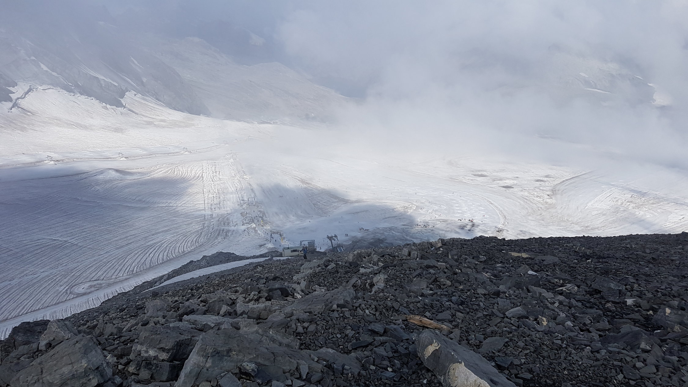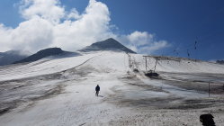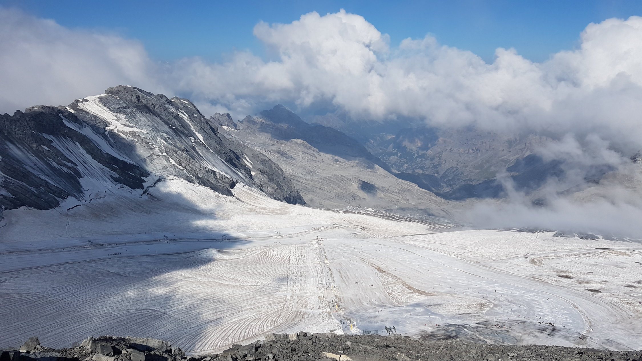 Auch auf dem Stilfser Joch dem Sommerskigebiet ist Schnee Mangelware.
