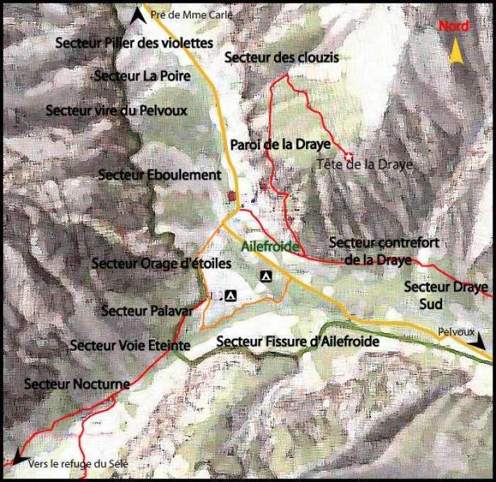 Ailefroide (Dauphiné) (1507m): Le Pantheon ... (6c+/7a oder A0, 6a obli); Secteur