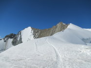 Auf dem Hohbalmgletscher wird es an einigen wenigen Stellen ein bissen Eisig. Aber noch ohne Probleme begehbar. Der Gipfelgrat hat besten Trittschnee.