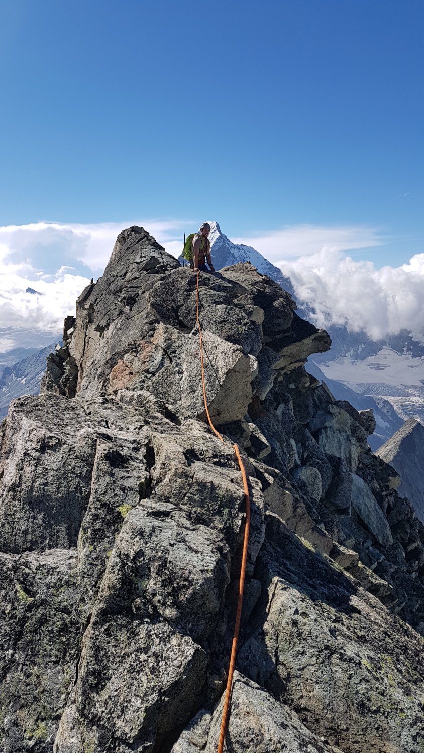 Wer die Pointe de Zinal angeht, darf sich auf eine recht wilde und einsame Tour freuen. Wir waren alleine am Grat. Eine weitere Seilschaft hat am Einstieg umgekehrt.