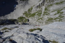 Ausstieg harmlose 3er, 2er und 1er Kletterei.
