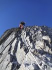 Im Abstieg wird es für den Nachsteigenden dann ein bisschen anspruchsvoller: entweder abklettern oder abseilen. Am Seil runterrutschn geht dann so nicht mehr!
